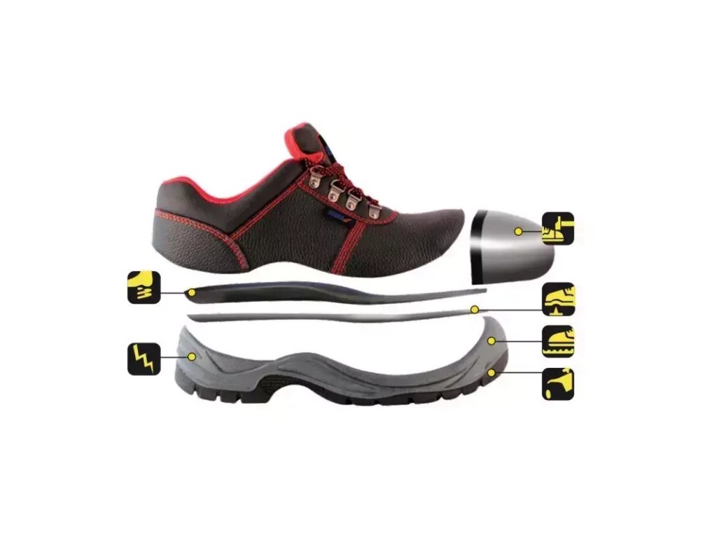 - Bezpečnostná obuv s oceľovou špičkou a stielkou proti prepichnutiu