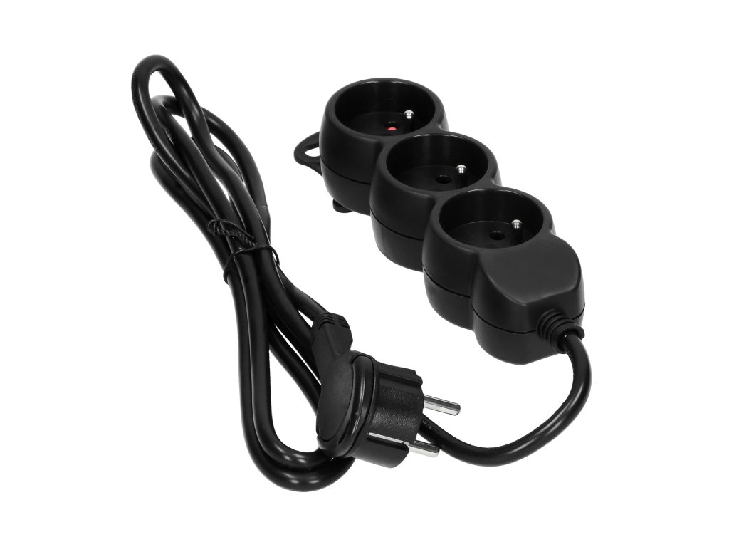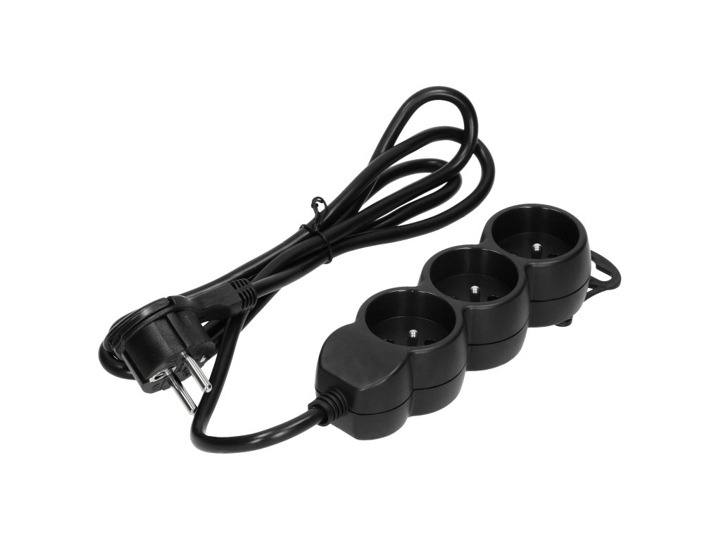- Tri zásuvky: Kábel je vybavený tromi dostatočne oddelenými zásuvkami, čo vám umožňuje napájať viaceré zariadenia súčasne.