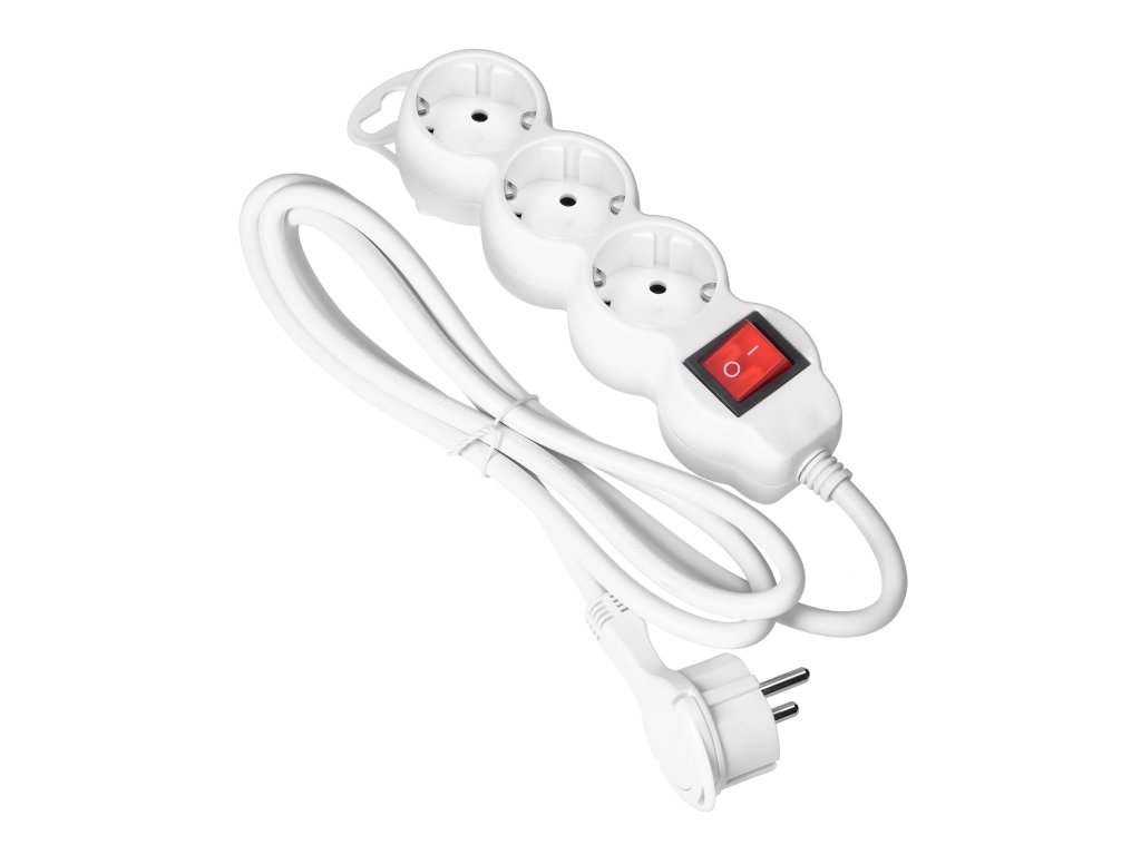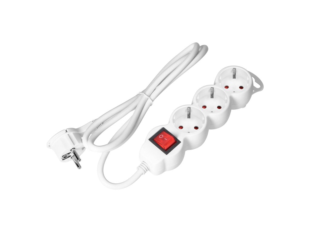Predlžovací kábel 3 zásuvky s vypínačom 5m biely
