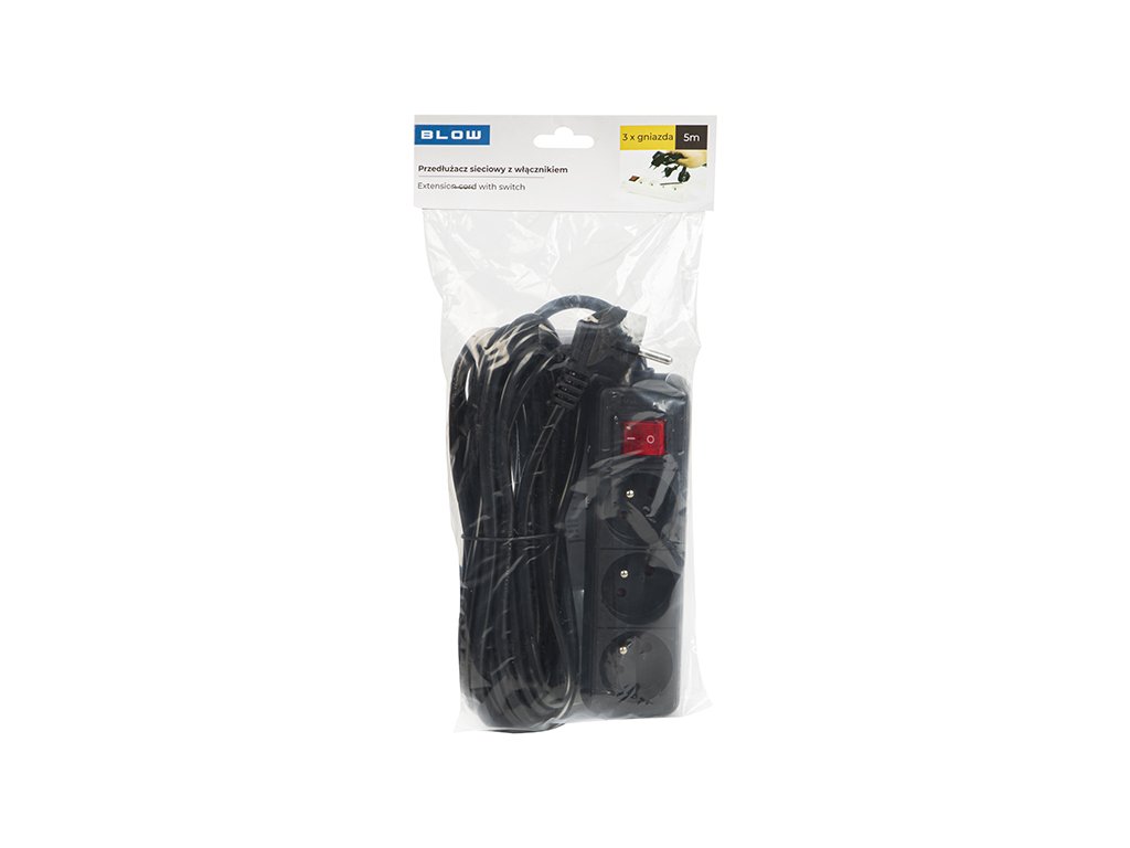Predlžovač 3-zásuvkový s vypínačom 5m čierny