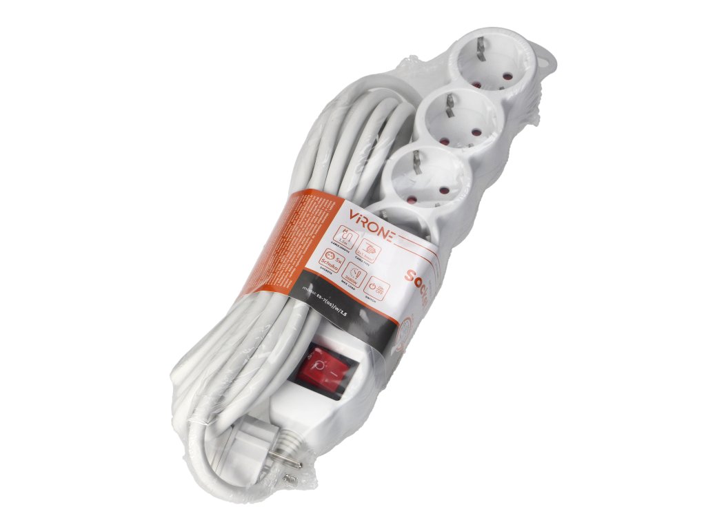 Predlžovací kábel 3m, 5 zásuviek, vypínač, biely je dokonalým riešením pre každodenné použitie v domácnosti aj v kancelárii. Tento kábel je ideálny pre napájanie spotrebičov ako sú televízory, počítače, lampy či kuchynské spotrebiče. S piatimi zásuvkami už nebudete musieť riešiť, kam zapojiť všetky vaše zariadenia.