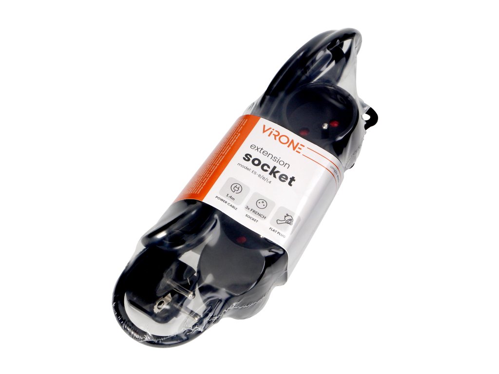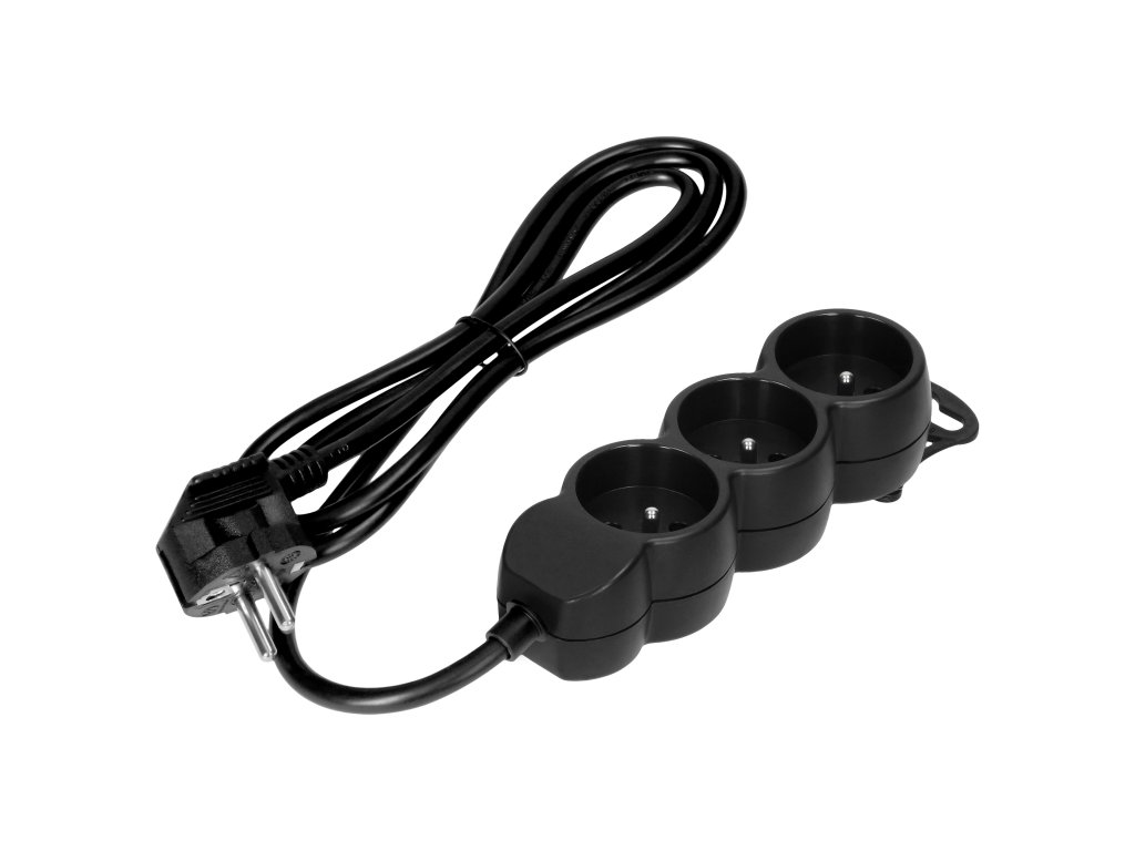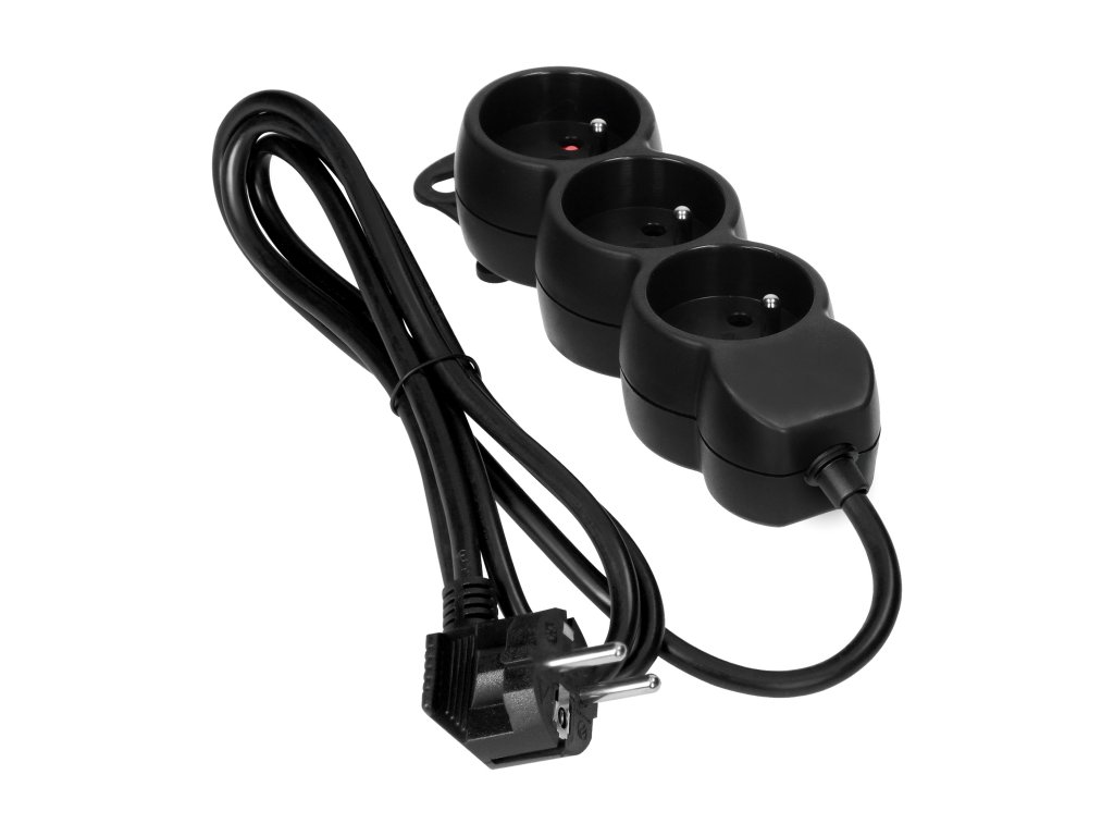 3-zásuvková predlžovacia zásuvka je jednoducho použiteľné a bezpečné riešenie pre kancelárie a domácnosti. Produkt je čierny, vybavený 3 francúzskymi zásuvkami (2P+E), káblom H05VV-F 3x1.5 mm2 s dĺžkou 1,4 m, plochou zástrčkou s pohodlnou rukoväťou, bezpečnostnými krytmi, pohodlným vešiakom, ak potrebujete zavesiť zariadenie napr. na stenu, PVC izoláciou. Pre použitie v interiéri (IP20).