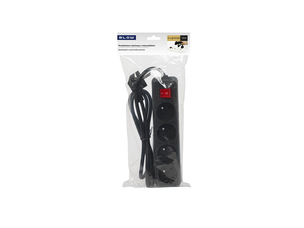 Predlžovací kábel 4 zásuvky s vypínačom 1,5m čierny