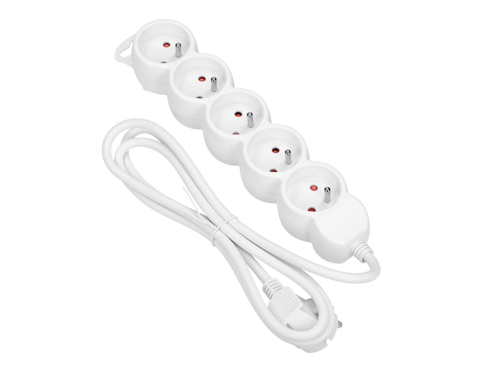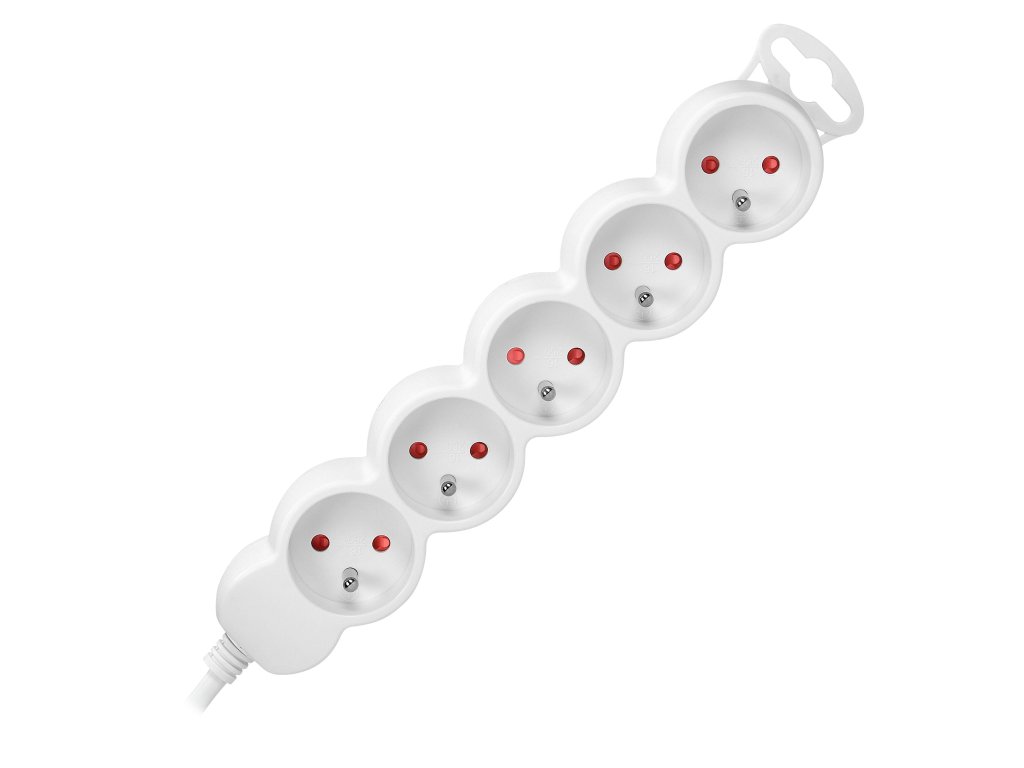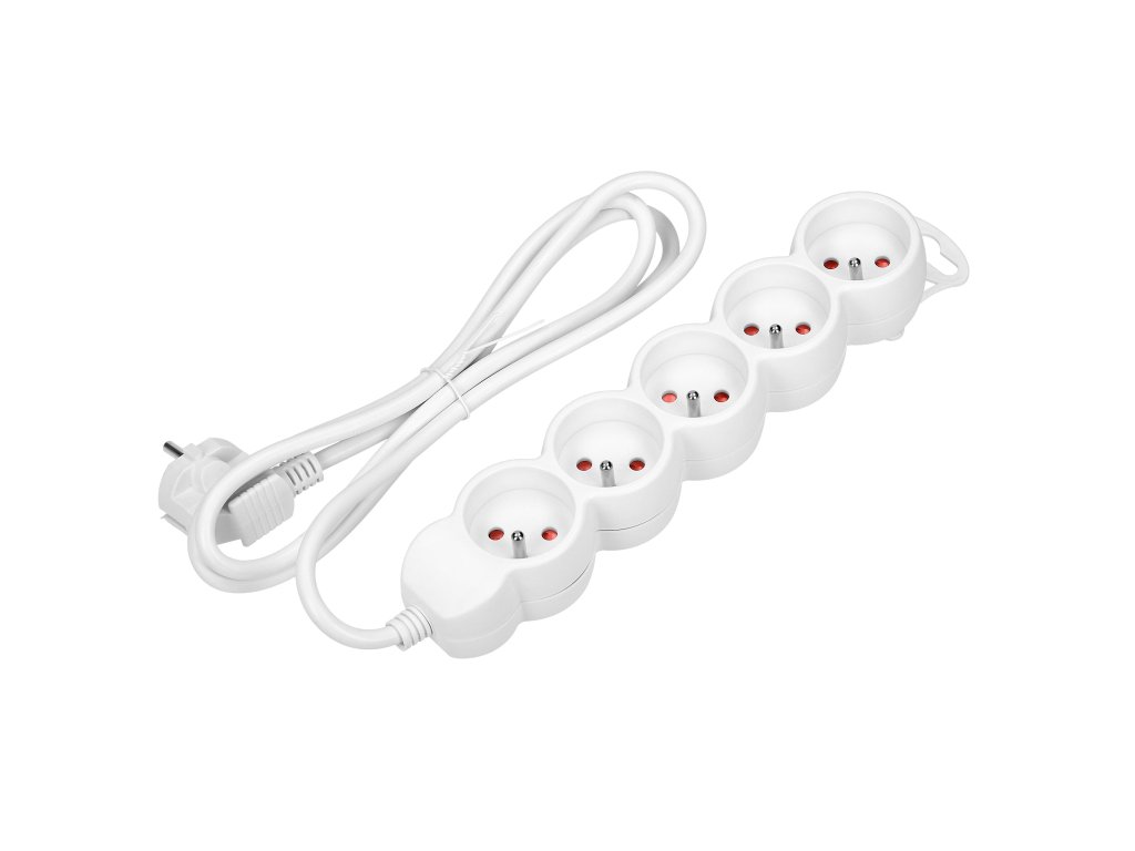 Predlžovací kábel 5 zástrčiek, 5 m biely