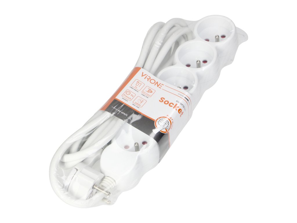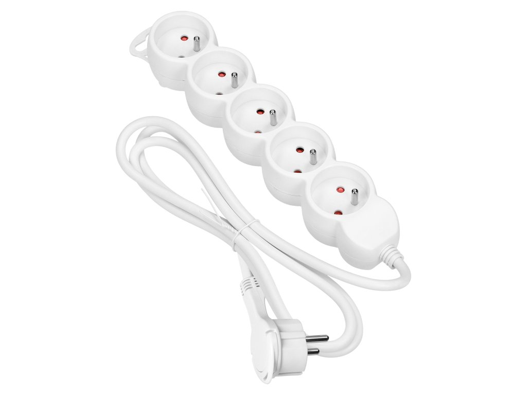 Predlžovací kábel 5 zásuviek, 3m, biely