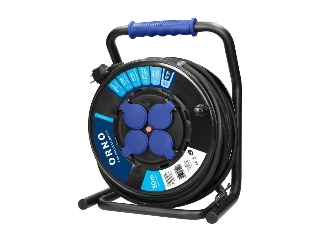 Vyskúšajte predlžovací kábel na bubne 30m IP44, 4 zásuvky a zažite pohodlie spojenia dlhých vzdialeností bez starostí o dostupnosť elektrického prípoja!