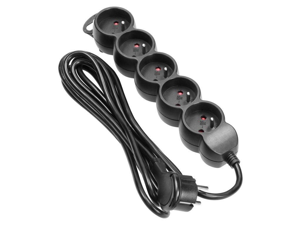 - Päť zásuviek: Poskytuje dostatok možností pre pripojenie viacerých spotrebičov či elektroniky naraz.