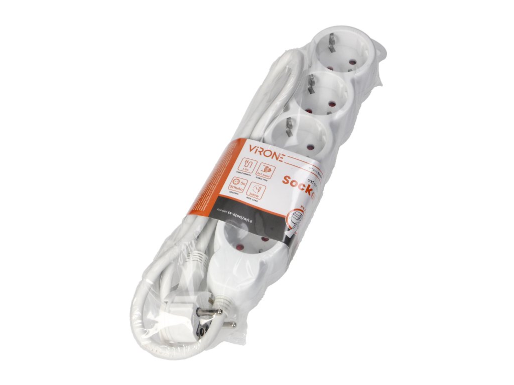 Predlžovačka 5 zásuviek, 1,5m, 16A, biela