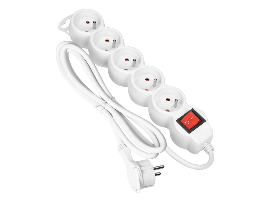 Predlžovačka 5 zásuviek so spínačom, 5m, 16A, biela