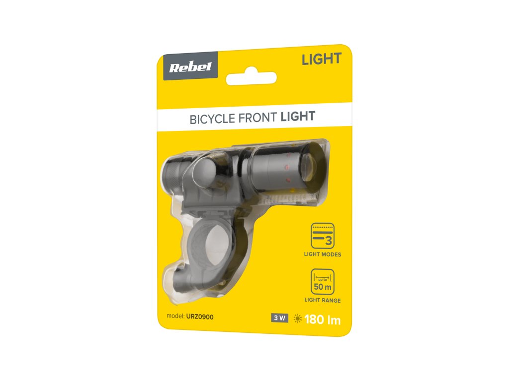 Svetlo na bicykel Rebel je ideálnym zariadením pre milovníkov nočných výletov na bicykli. Ide o predné cyklistické svetlo LED s výkonom 3 W, ktoré vďaka svetelnému toku 180 lm dokonale osvetľuje cestu v dosahu 50 m.