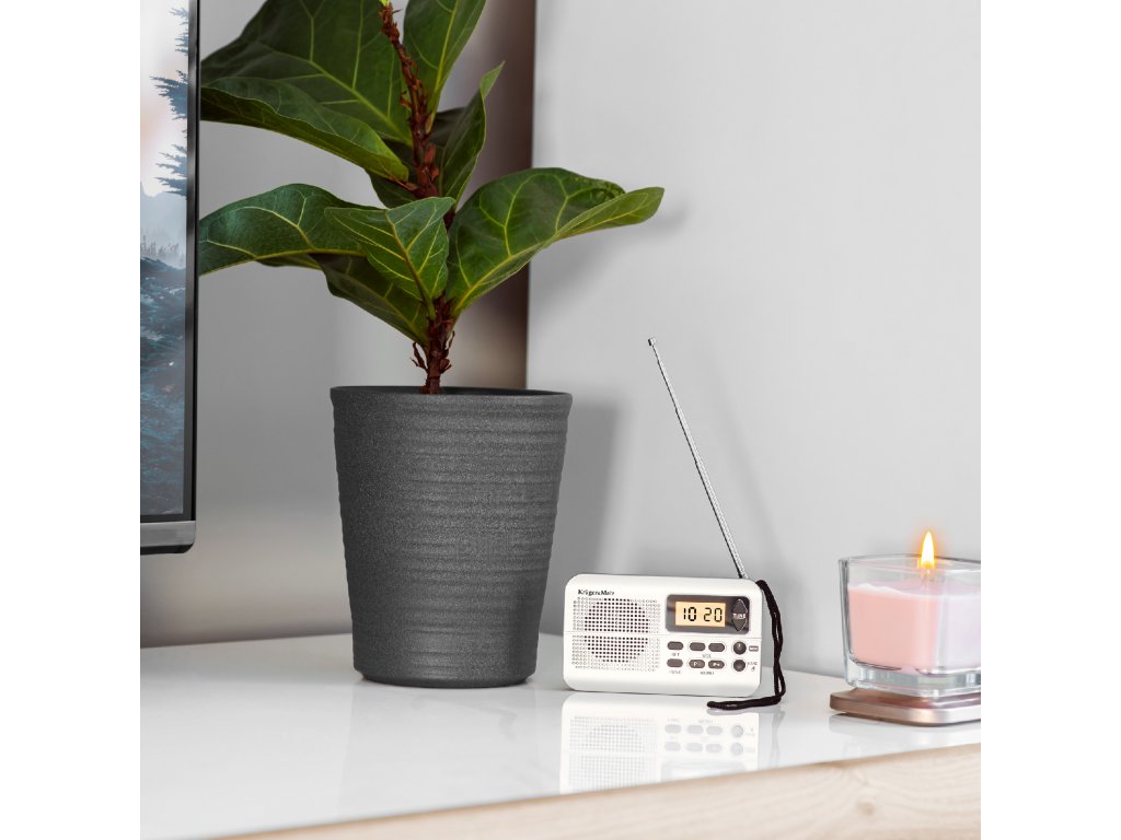 KM 819 je malé rádio napájané batériami, ktoré si zapamätá až 20 vašich obľúbených staníc. Jeho funkčnosť je rozšírená o funkciu hodín a budíka. Vďaka nemu sa môžete zobudiť na zvuk tradičného bzučiaka alebo poslednej počúvanej rozhlasovej stanice.
