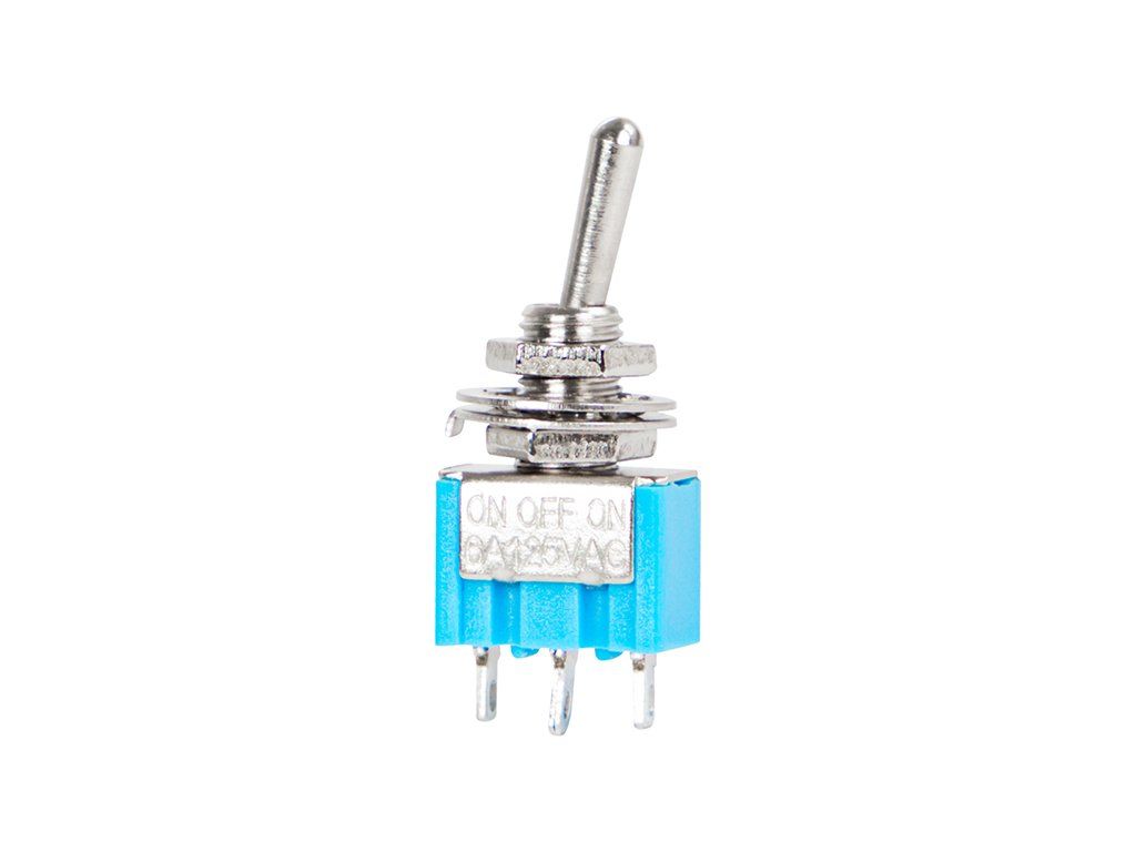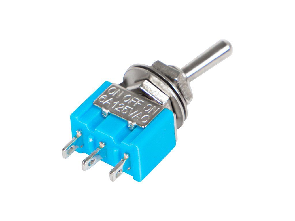 Prepínač MTS 103 je jednopólový prepínač s tromi polohami on-off-on určený na jednoduché a spoľahlivé prepínanie elektrických obvodov. Vhodný je pre montáž do rôznych elektronických zariadení, ovládacích panelov a hobby projektov, kde je potrebné prepínať medzi dvomi stavmi alebo jedným stredovým vypnutím.