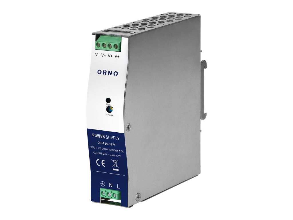 Priemyselný napájací zdroj na DIN lištu, 24VDC 3.2A 77W, kovové puzdro
