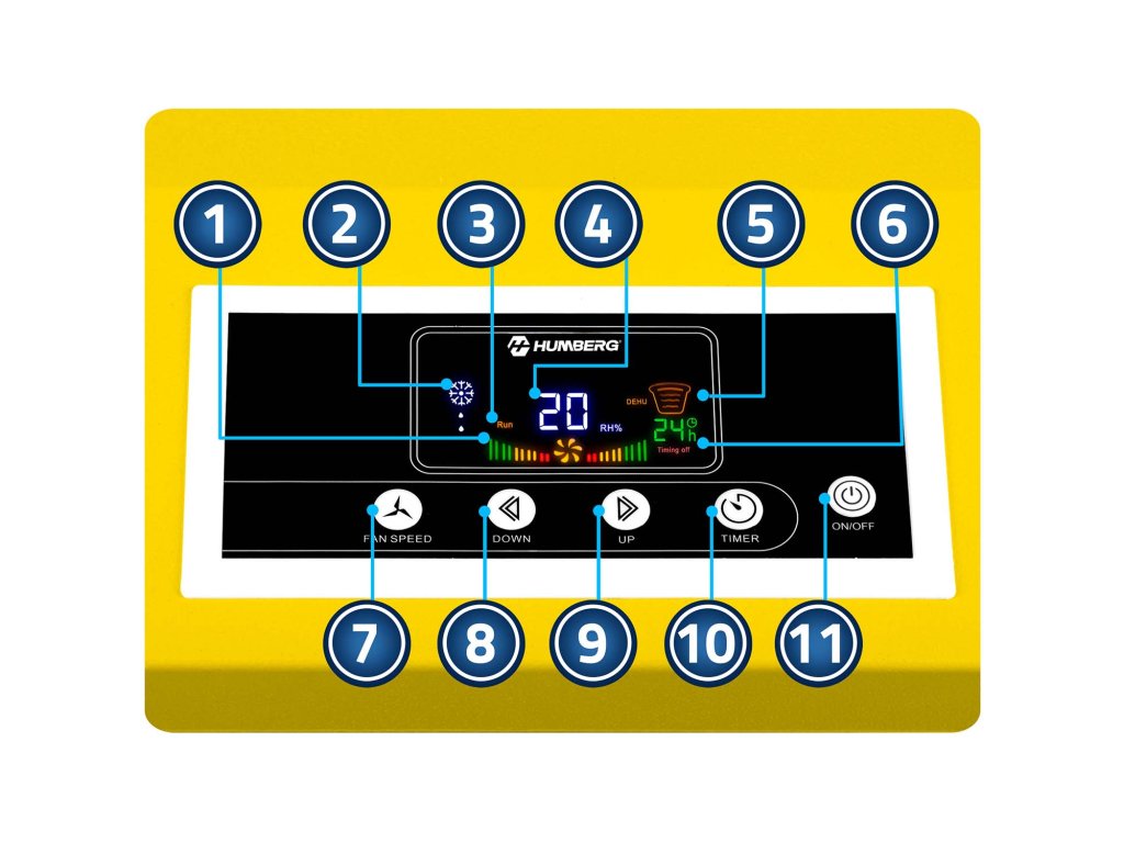 Odvlhčovač komunikuje pomocou kontrolnej lampy, zvukového signálu, indikátora hladiny vody, displeja a indikátora prevádzky ventilátora – každý profesionál využije príslušné indikácie na optimalizáciu prevádzky zariadenia.