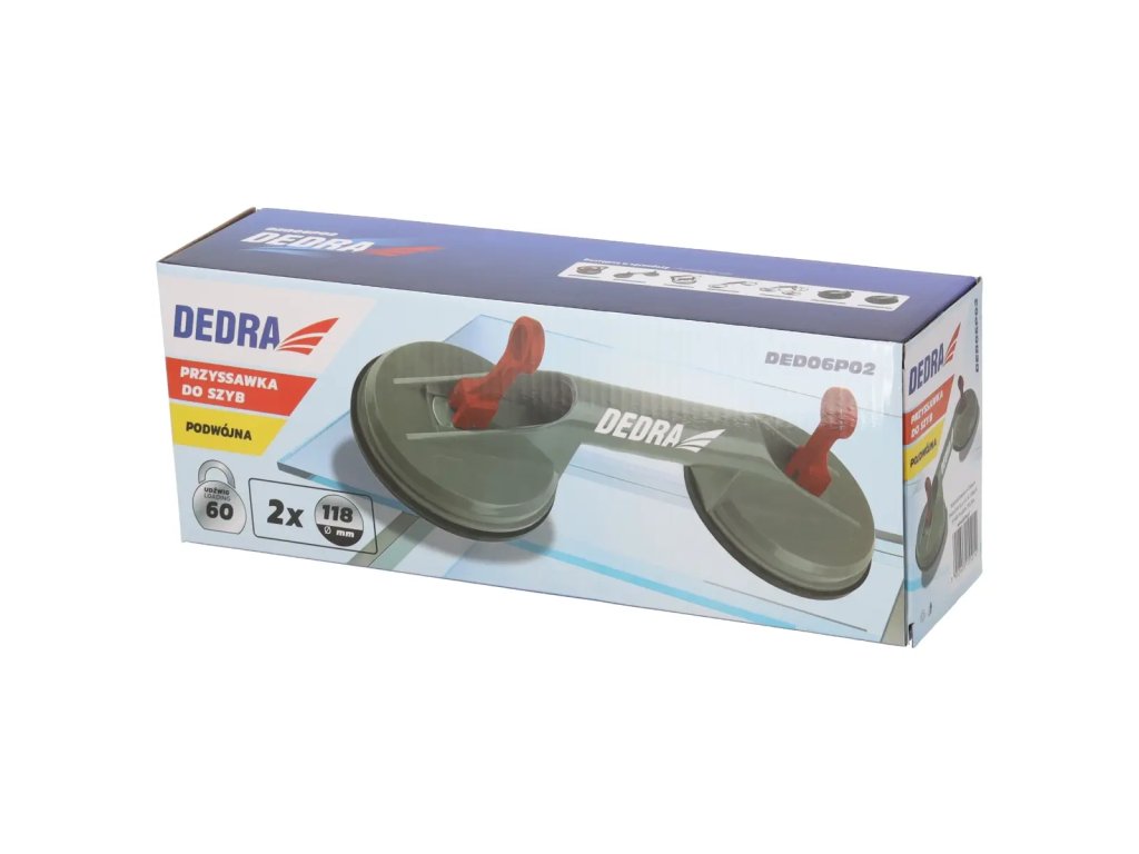 Maximálna nosnosť prísavky na zasklievanie DED06P02 je 60 kg, takže je najvhodnejšia na prepravu panelov, veľkorozmerných skiel.