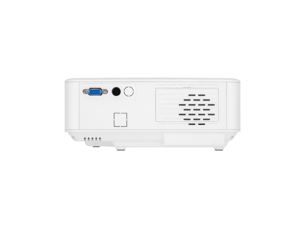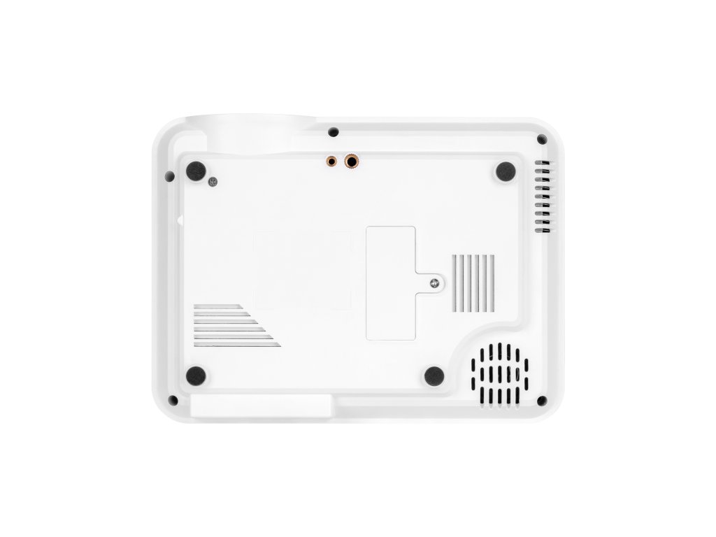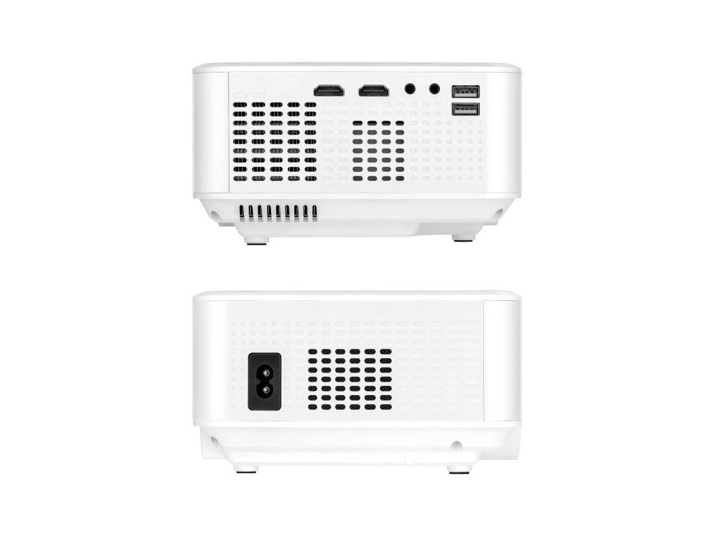 Projektor, AV kábel (Jack 3,5 - 3x RCA), napájací kábel, diaľkové ovládanie, skrutka (na nastavenie uhla podstavca)