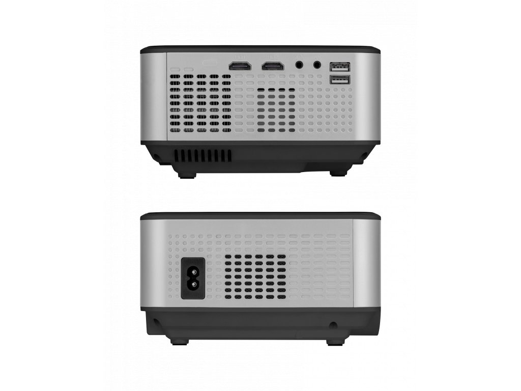 Projektor, AV kábel (Jack 3,5 - 3x RCA), napájací kábel, diaľkové ovládanie, skrutka (na nastavenie uhla základne)