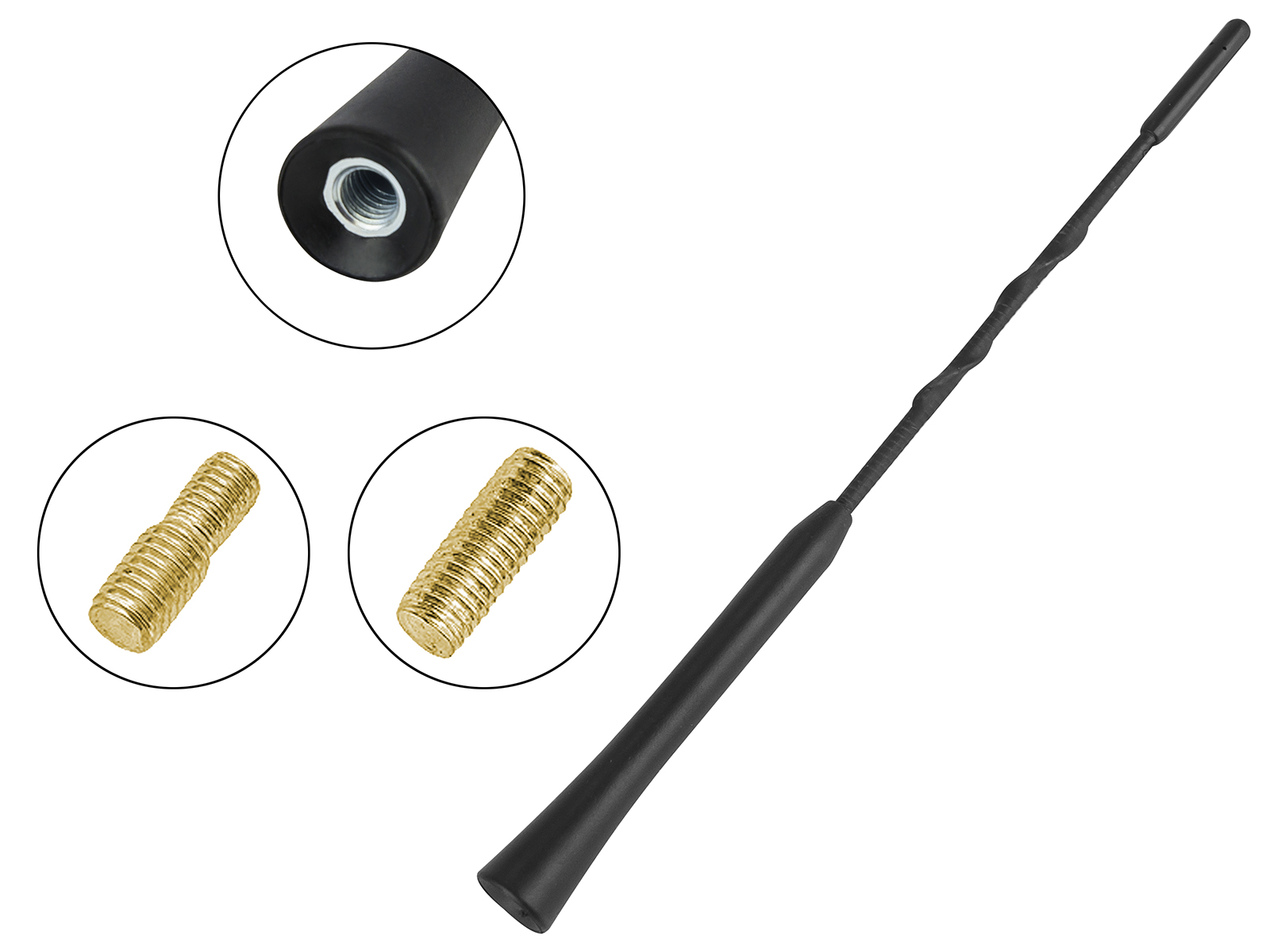 Anténa je vhodná pre široké spektrum osobných vozidiel rôznych značiek. Vďaka dodávaným montážnym skrutkám M5 a M6 je montáž flexibilná a jednoduchšia aj pri rôznych typoch závitov. Krátka prútová konštrukcia je praktická do mesta, do umývárne aj na každodenné používanie.