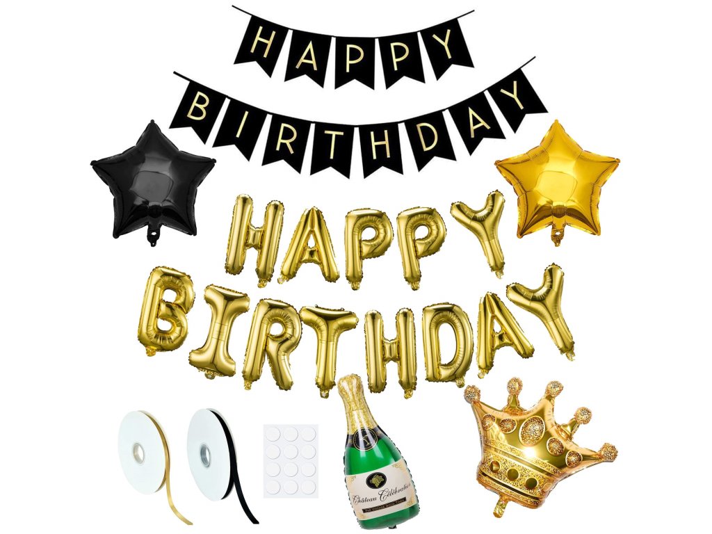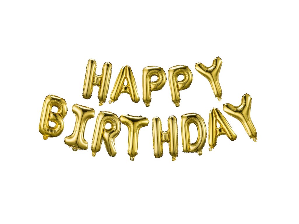 - 1x zlatý nápis "Happy Birthday" 13 písmen - výška: cca 30 cm