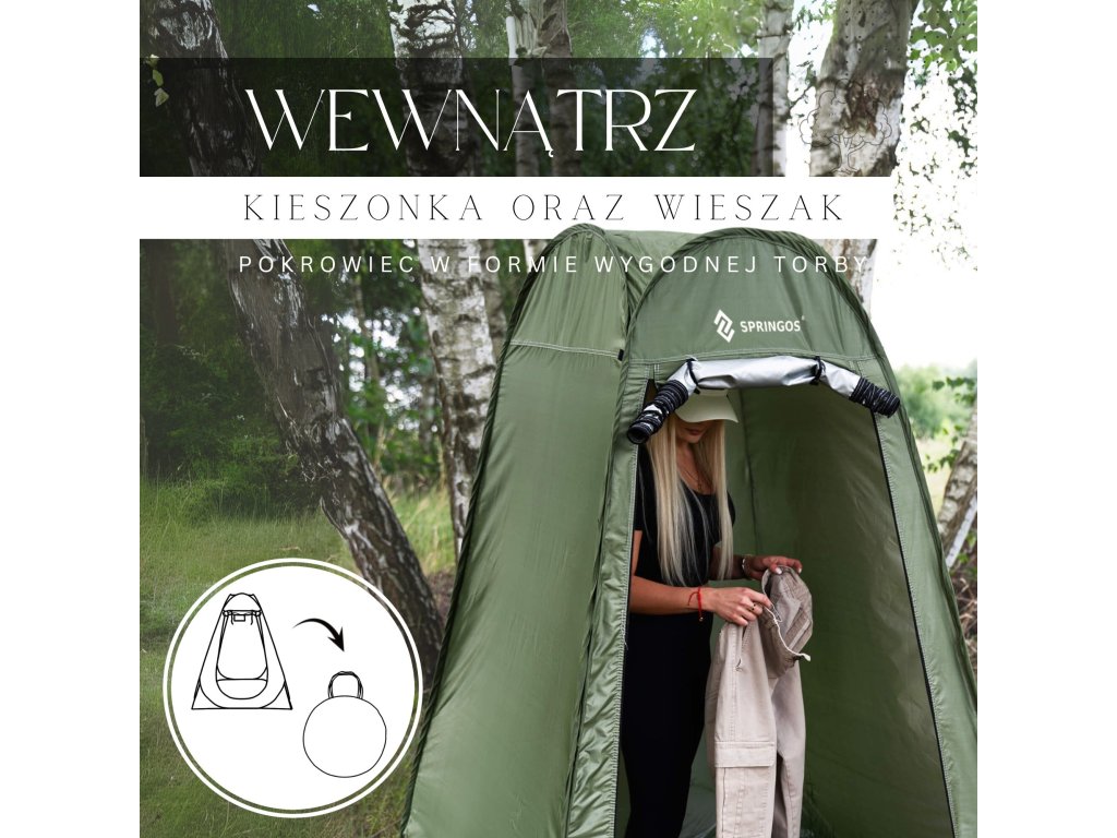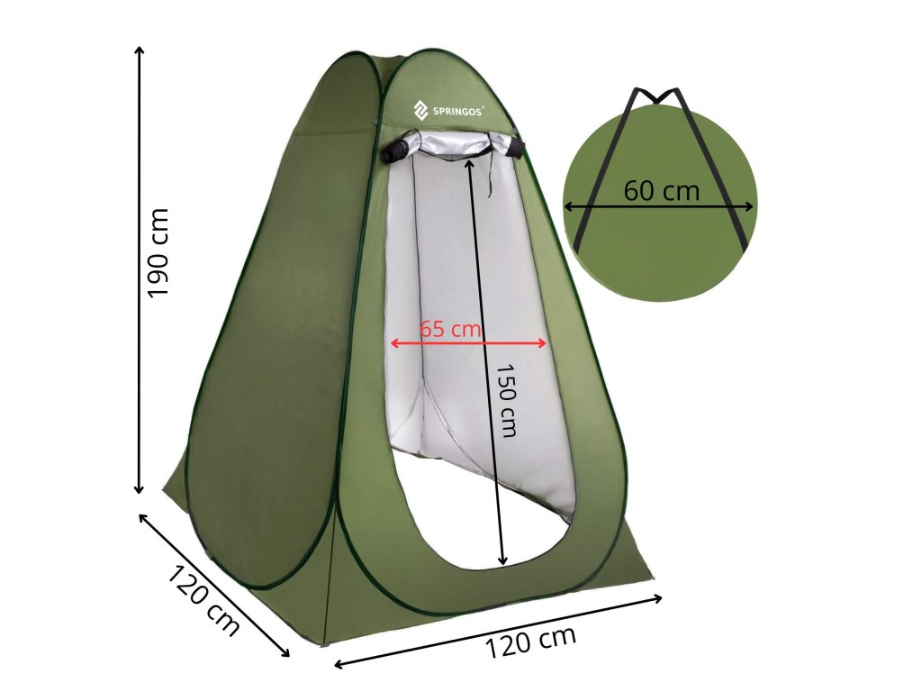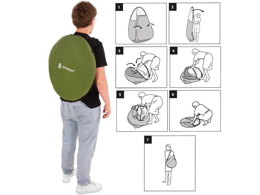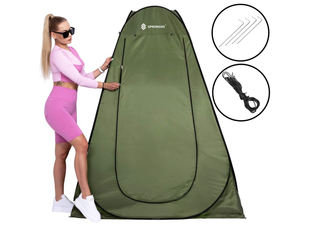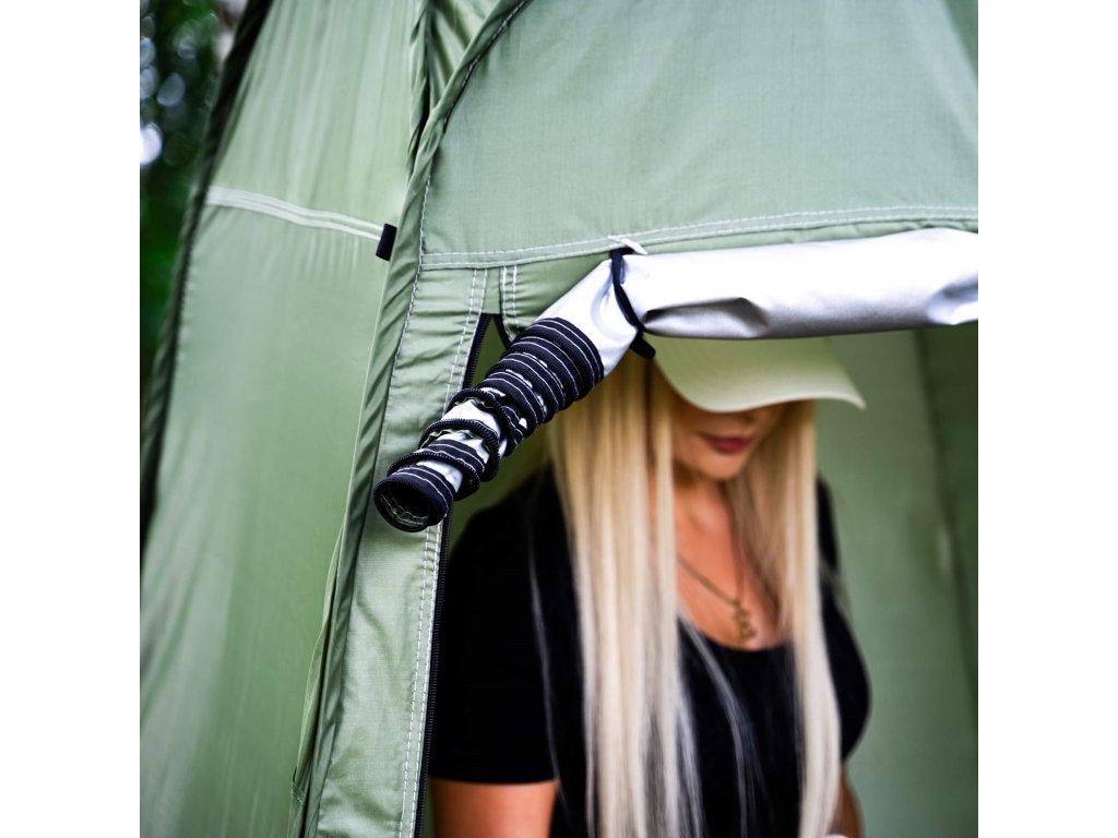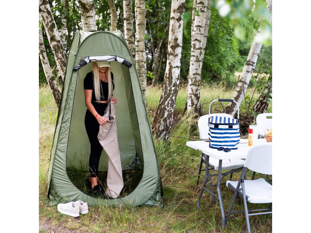- At the top of each corner of the wall, 4 hooks through which you can thread ropes and secure the changing room to stand stable and not sway in the wind