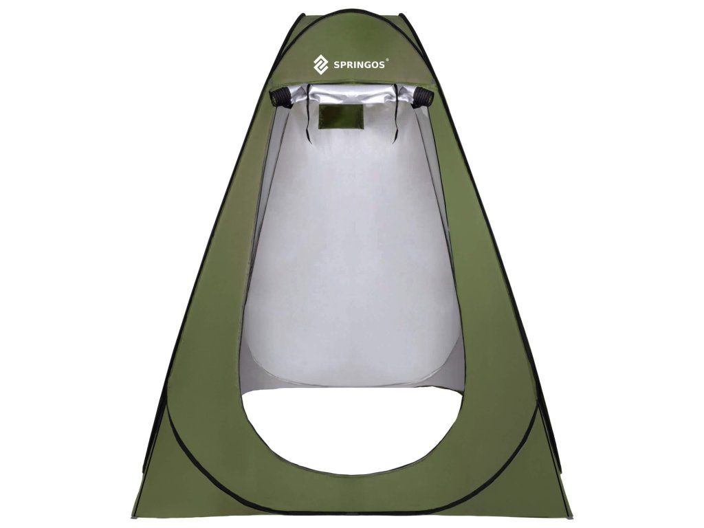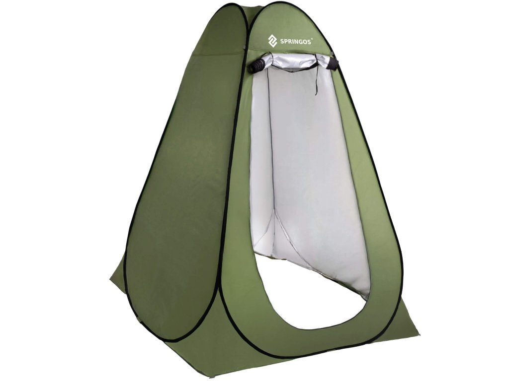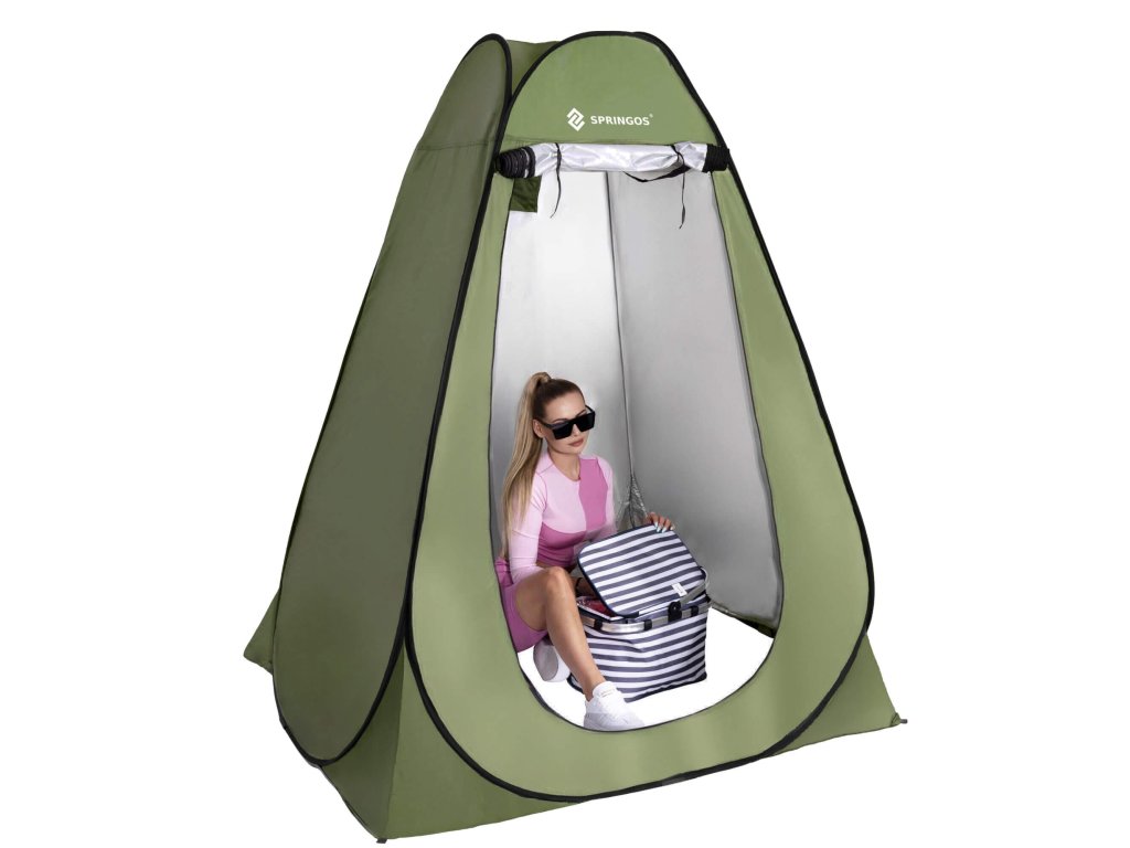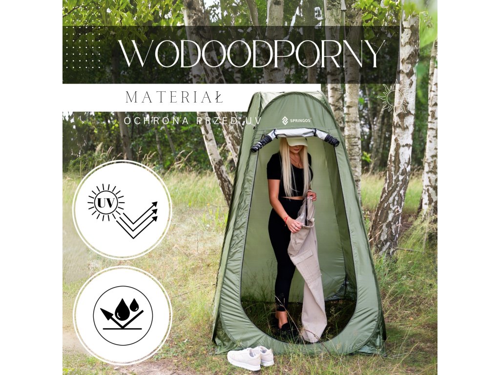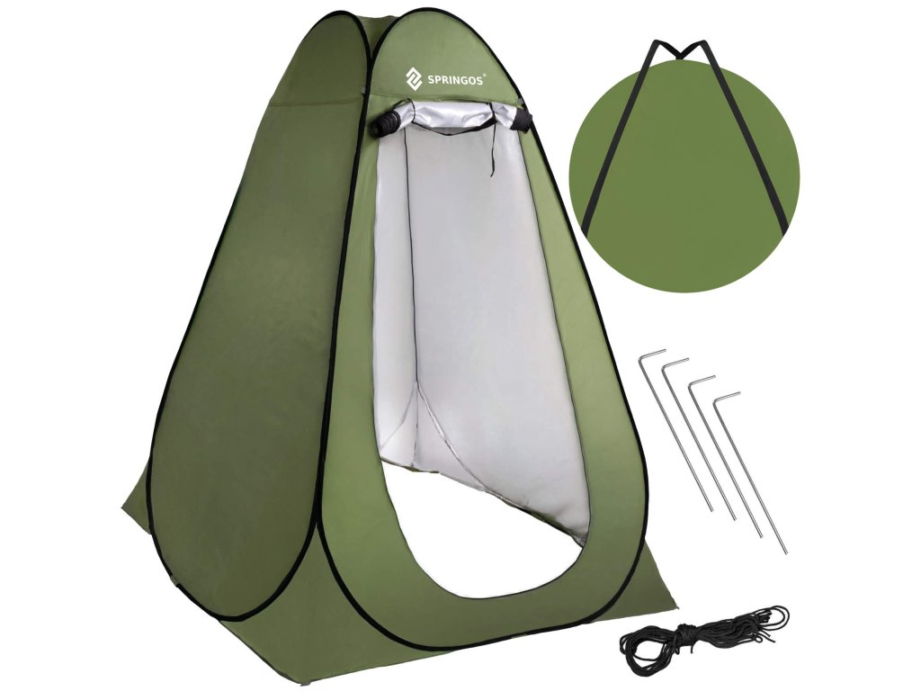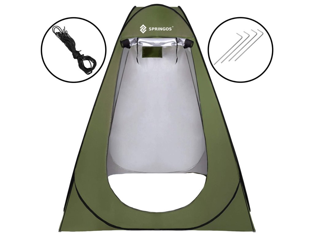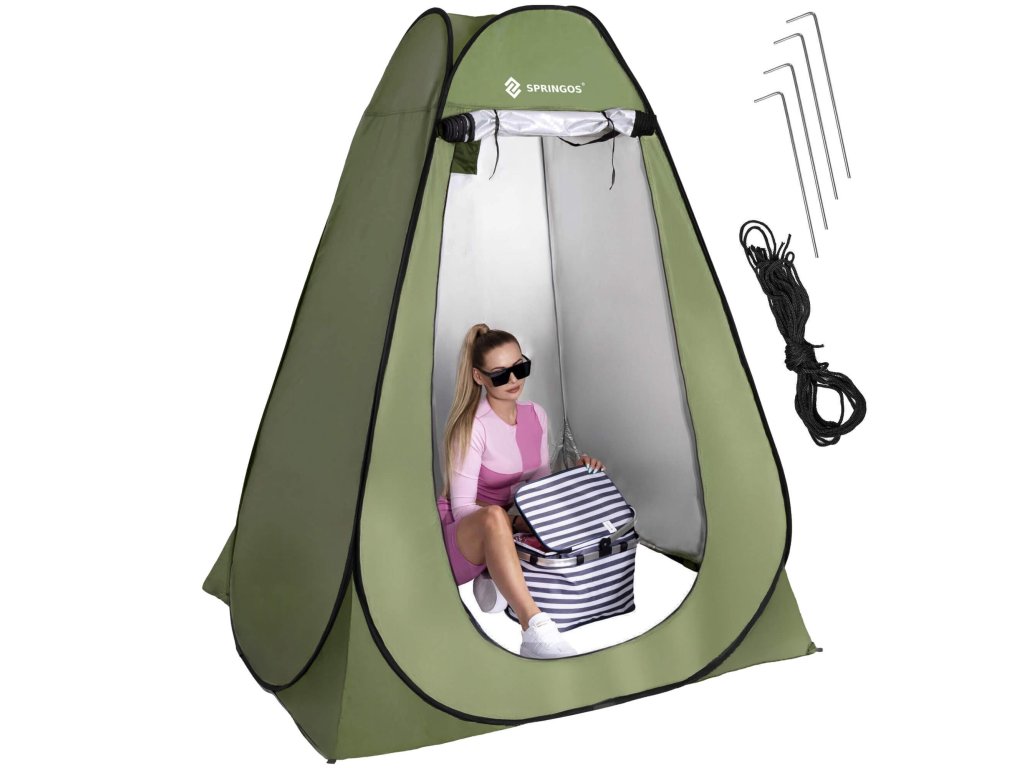 - At the top of each corner of the wall, 4 hooks through which you can thread ropes and secure the changing room to stand stable and not sway in the wind