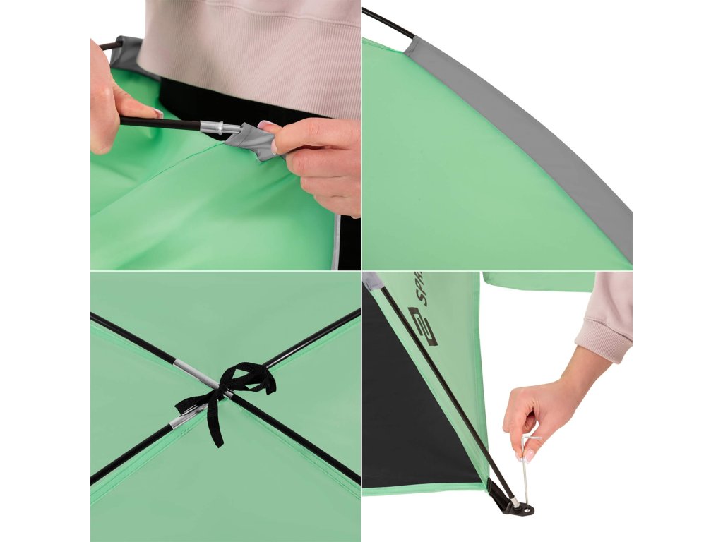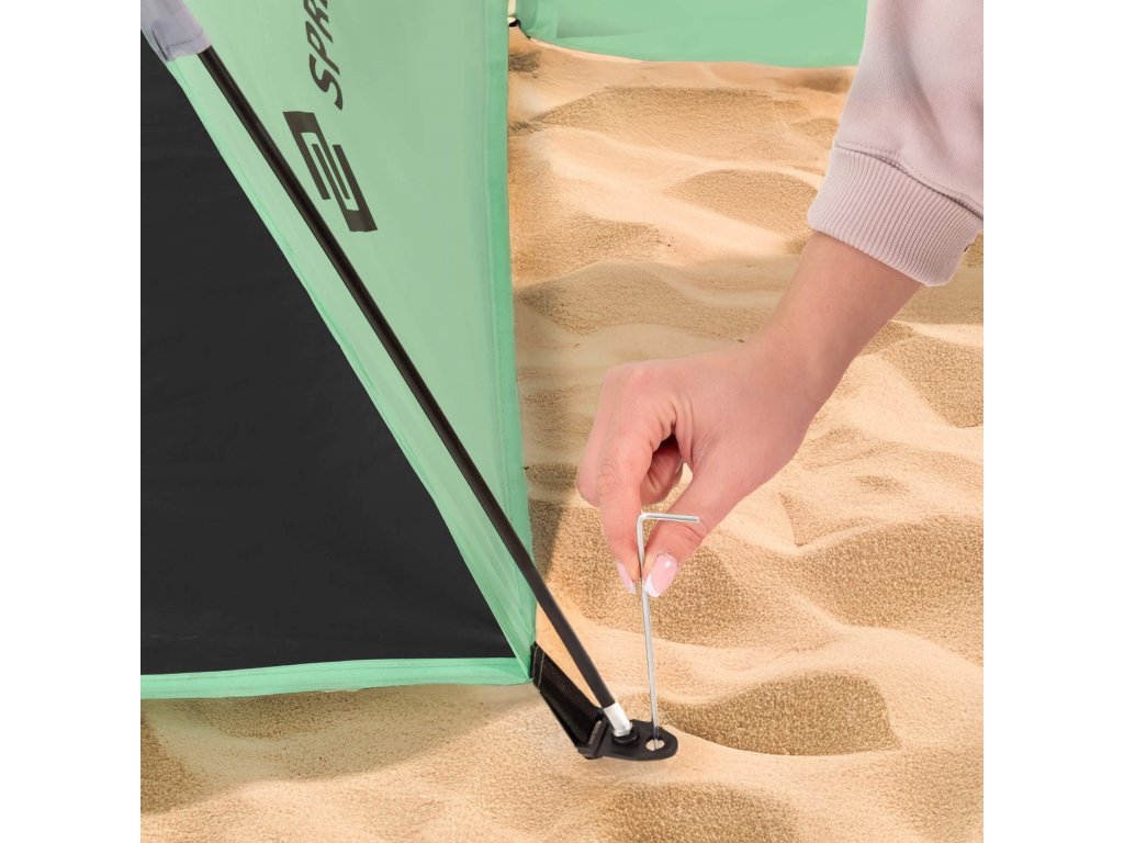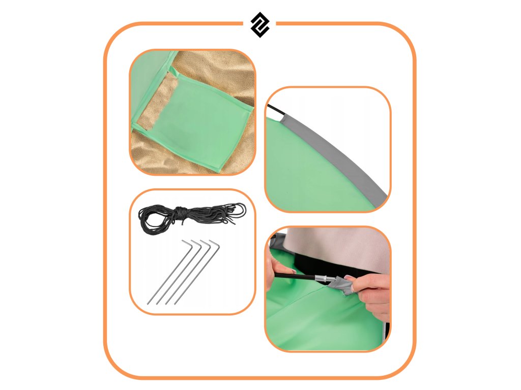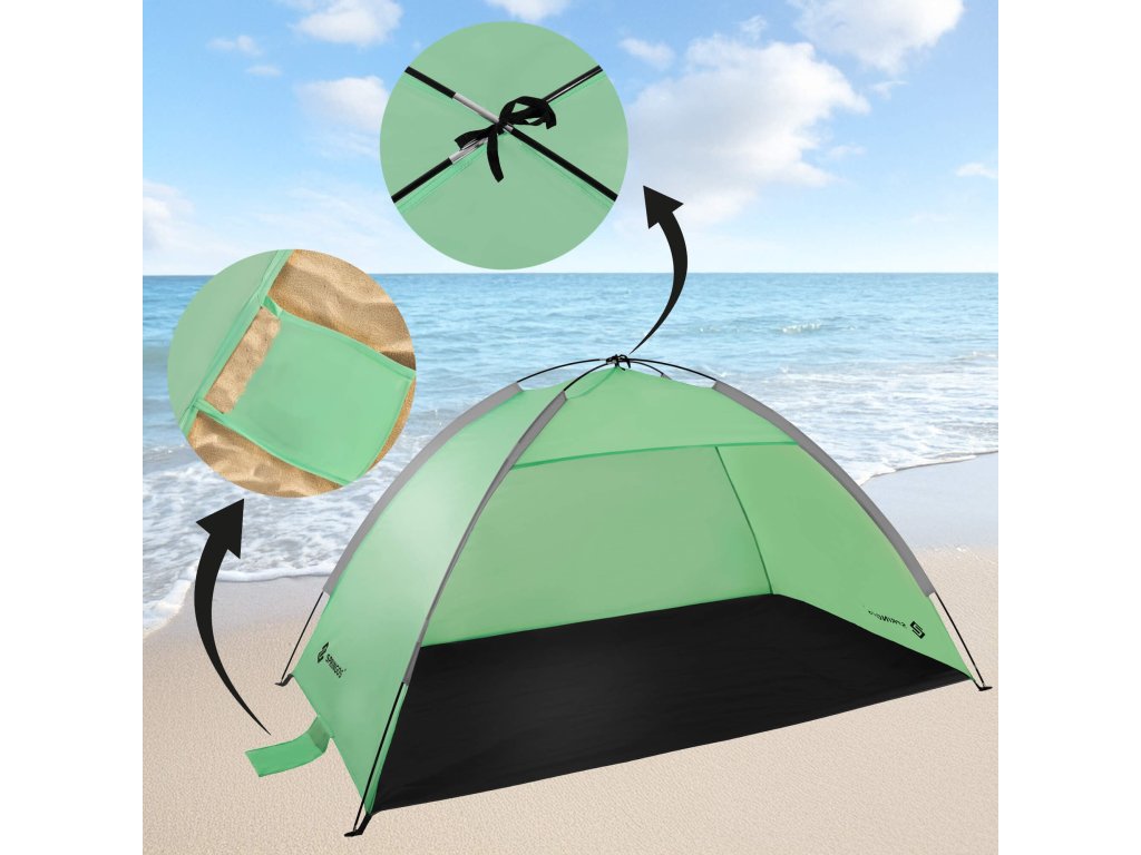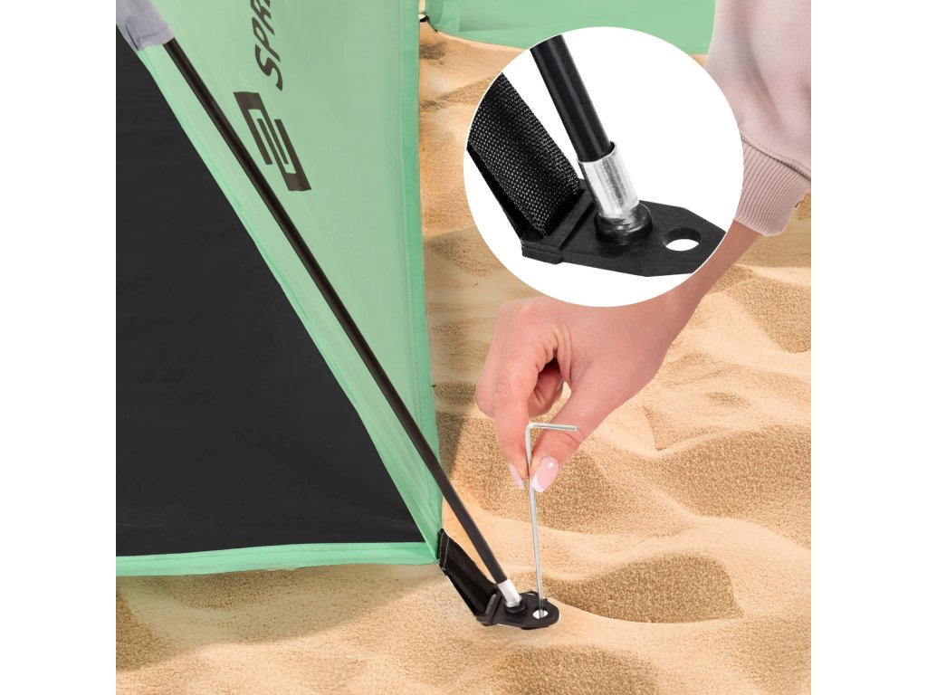 - Na bokoch 2 ďalšie vrecká na zaťaženie z vonkajšej strany stanu - môžete do nich vložiť kamene alebo piesok, aby ste zvýšili stabilitu stanu!