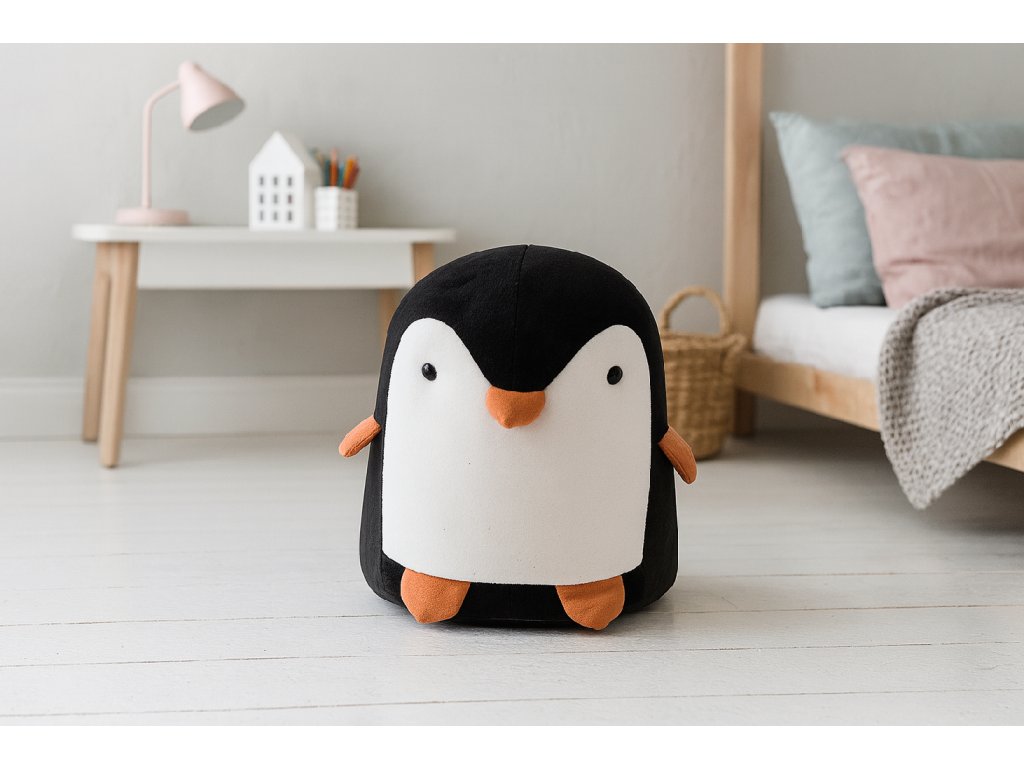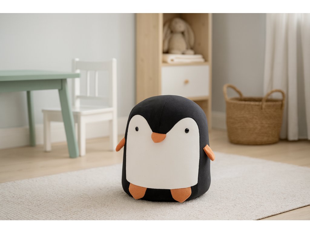 PUFKA PINGVÍN 28x34 cm je praktické a roztomilé sedadlo pre deti. Stabilná konštrukcia z dreva a mäkká výplň z peny zaručujú, že sa ideálne hodí do detskej izby ako funkčný a dekoratívny nábytok.