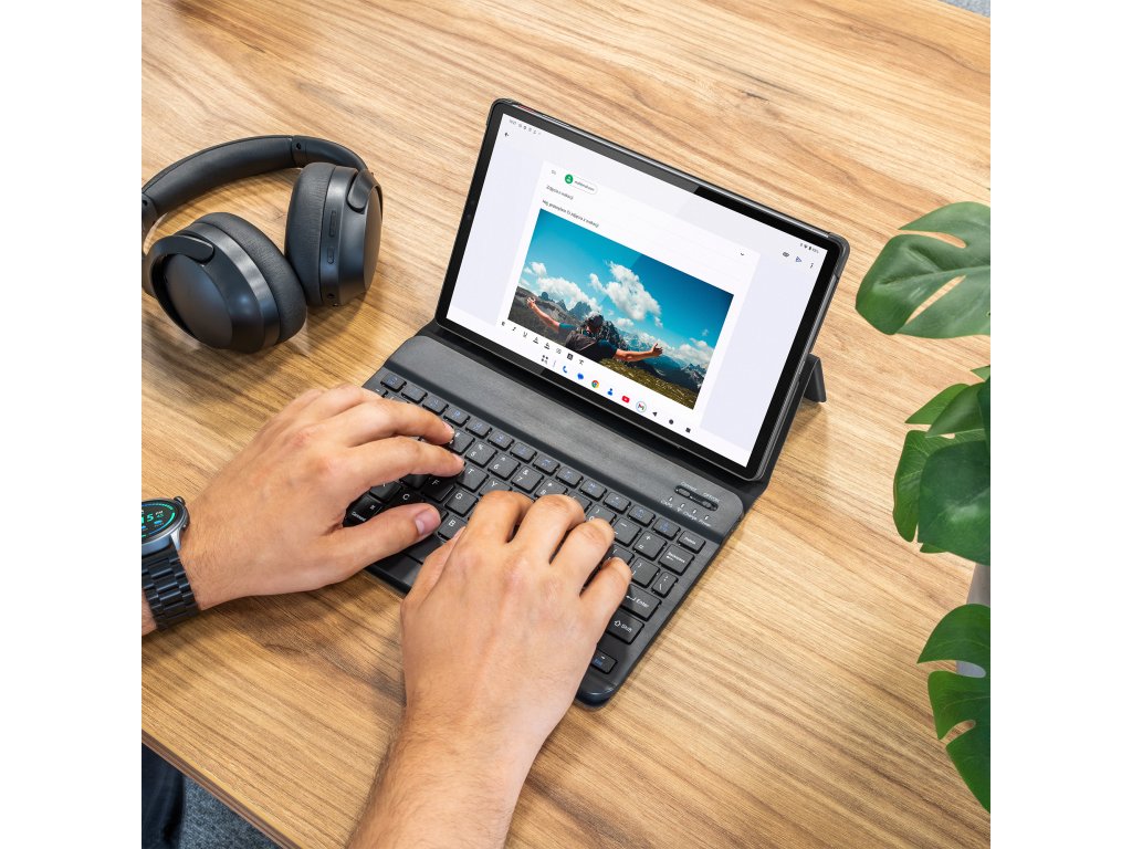 Integrovaná klávesnica sa pripája k tabletu prostredníctvom technológie Bluetooth 5.0, ponúkajúc stabilné pripojenie do 10 metrov. Magnetické uchytenie umožňuje jednoduché oddelenie klávesnice v prípade potreby, poskytujúc flexibilitu pri používaní. Je to ideálny nástroj na písanie e-mailov, poznámok či dokumentov.