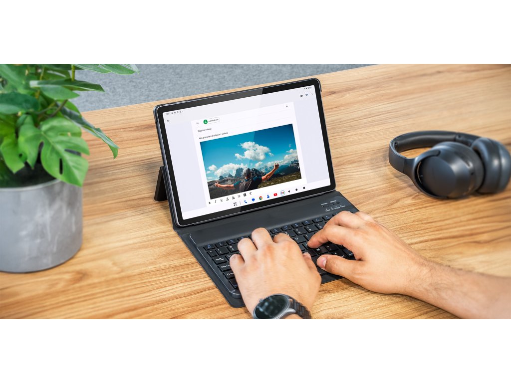 Integrovaná klávesnica sa pripája k tabletu pomocou technológie Bluetooth 5.0, ponúka stabilné pripojenie až do 10 metrov. Magnetické uchytenie umožňuje ľahko odpojiť klávesnicu podľa potreby, čo poskytuje flexibilitu pri používaní. Je to ideálny nástroj na písanie e-mailov, poznámok alebo dokumentov.