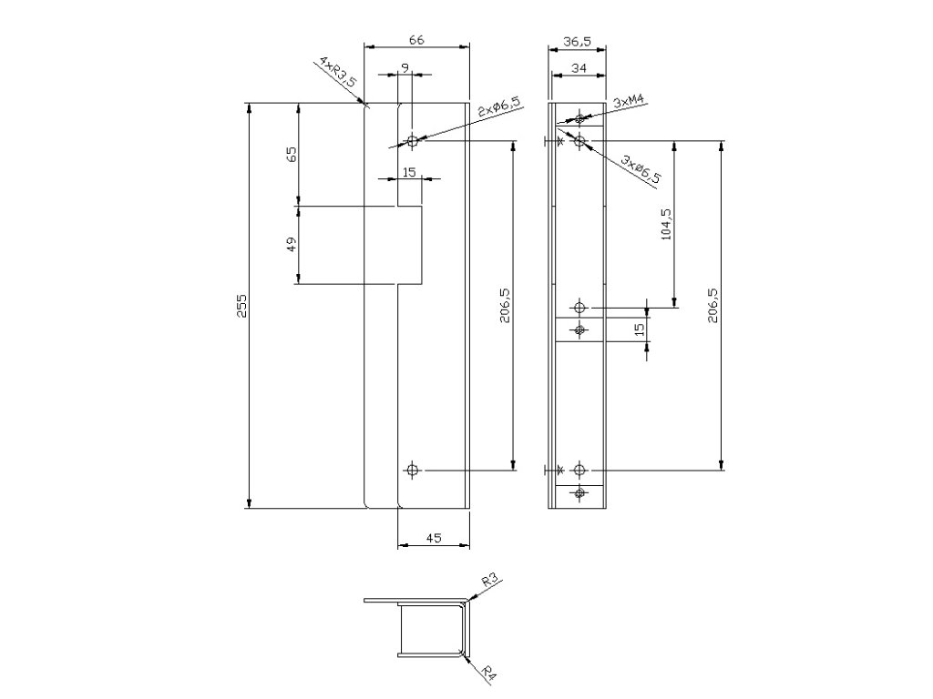 Kazeta prispôsobená pre zámky R3, R4 a R5. Prispôsobenie pre vhodný zámok umožňuje doraz, ktorý môže byť upevnený z oboch strán kazety. Vyrobená z plechu o hrúbke 2 mm (kazeta) a 2,5 mm (doraz). Kazetu možno namontovať povrchovo alebo zamurovať v stĺpiku do vhodnej hĺbky. Produkt je pokrytý zinkovou vrstvou.