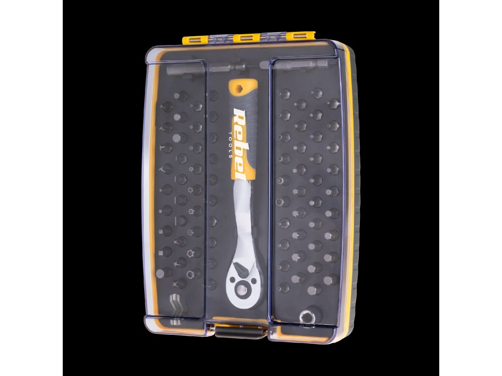 Sada Rebel s račniovým kľúčom a 80 bitmi je nepostrádateľný nástroj v každej dielni, garáži alebo domácim kutilskom kútiku. Vysokokvalitné prevedenie a široký výber koncoviek robia zo sady výborný nástroj tak pri jednoduchých opravách, ako aj pri náročnejších montážnych či servisných prácach.