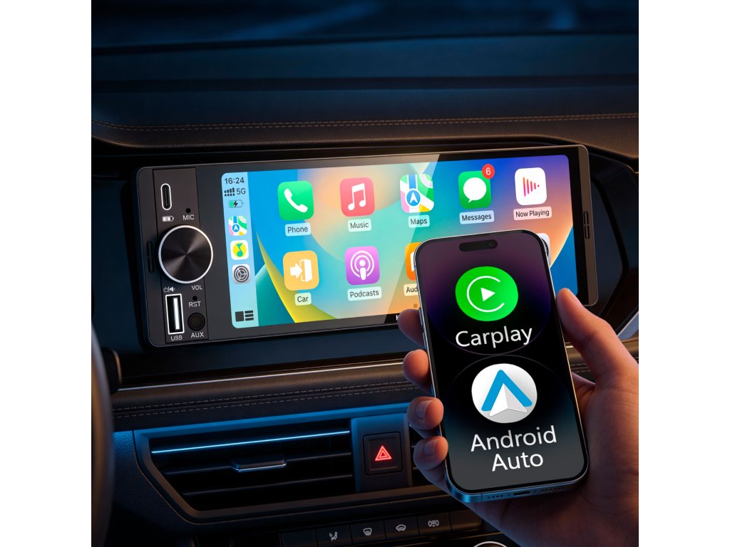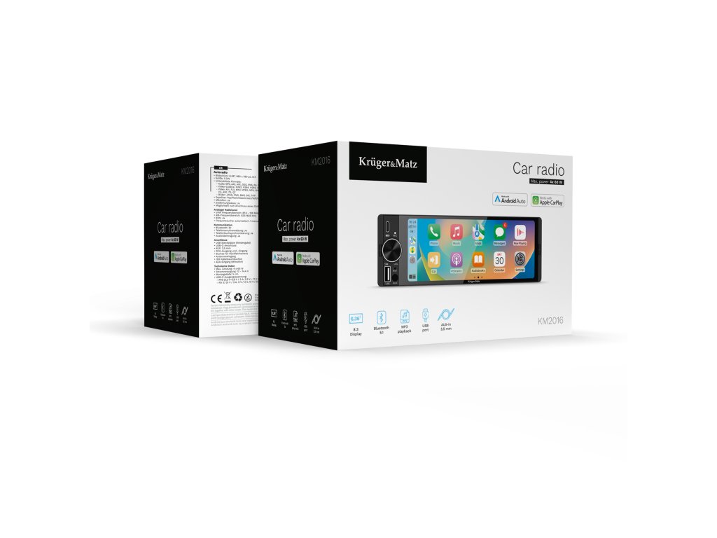 Vďaka podpore Android Auto a Apple CarPlay rádio Kruger&Matz KM2016 umožňuje bezpečne používať funkcie smartfónu počas jazdy. Navigácia, hudba, hovory a kompatibilné aplikácie sú zobrazené priamo na displeji rádia, čo zvyšuje pohodlie používania a obmedzuje rozptýlenie vodiča.