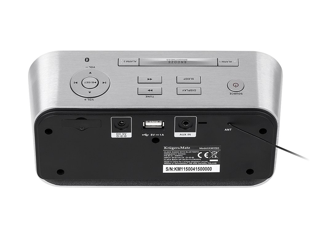 Zariadenie má vstup Aux-in, port USB a podporuje pripojenie Bluetooth. Vďaka tomu svojimi funkciami uspokojí aj tých najnáročnejších používateľov. Nový rádiobudík Kruger&Matz poskytuje možnosť pripojenia k externým zariadeniam a prehrávania hudby z nich podľa vlastných individuálnych potrieb. KM1150 je vám k dispozícii v závislosti od toho, či uprednostňujete káblové pripojenie alebo nie.