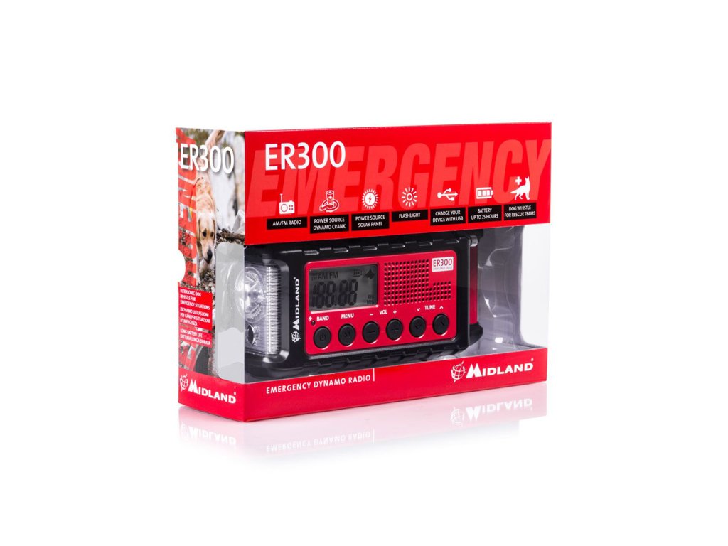 Rádiový alarm Midland ER300 s batériou 2600mAh dynamo solárny