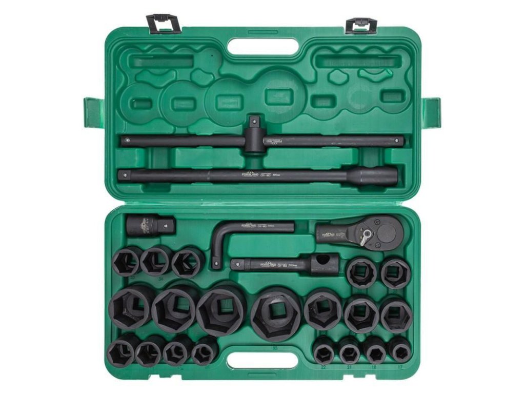 Profesionálna súprava nástrčných kľúčov 3/4"+1". Ideálna pre veľké nákladné automobily aj poľnohospodárske stroje, vyrobená z pevného materiálu, čo skvelo ovplyvňuje ich odolnosť. Nevyhnutný v každej autodielni, nástavce tejto veľkosti pomôžu pri oprave nákladných áut či poľnohospodárskych strojov. Ideálne pri uvoľňovaní alebo utiahnutí veľkých skrutiek. Všetky nástavce a adaptéry sú umiestnené v praktickom kufríku. Súprava pozostáva z 26 dielov. Kufrík zaručuje bezpečný transport, bez možnosti samovoľného otvorenia.