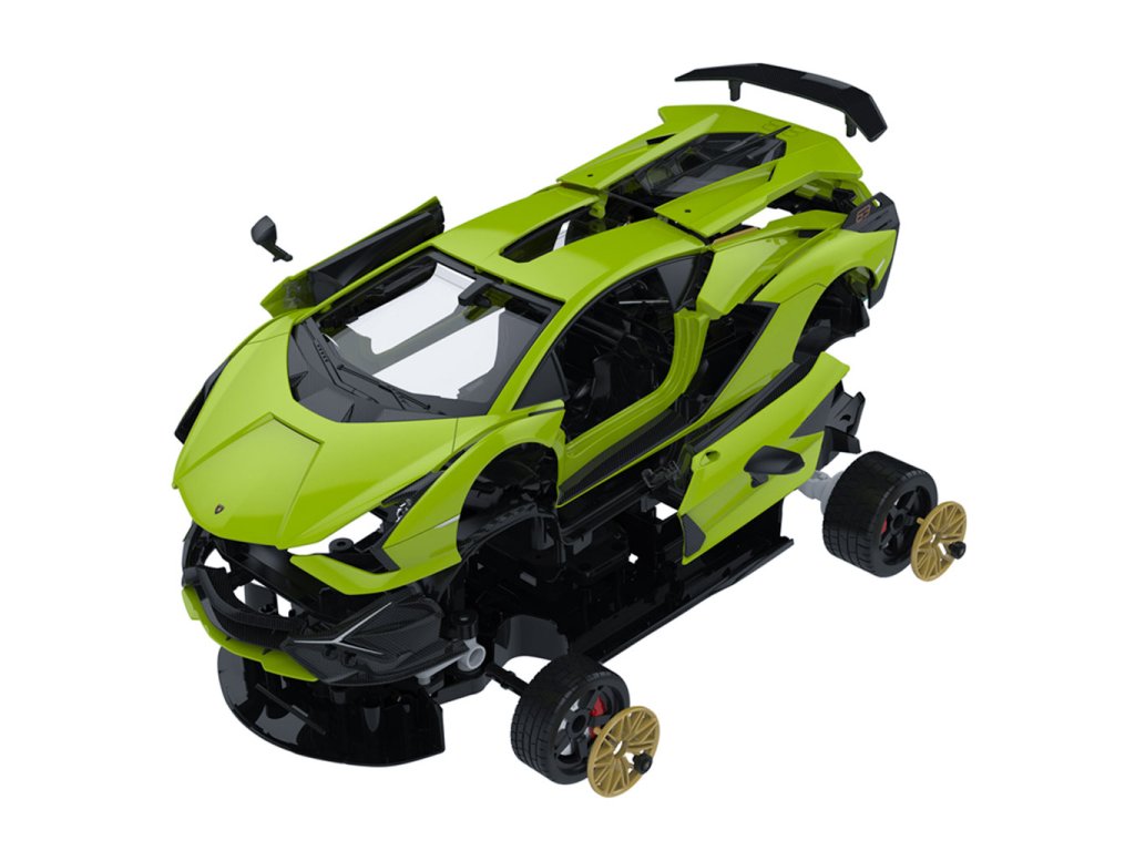 Auto Lamborghini Sian na diaľkové ovládanie na samostatnú montáž je kreatívna hračka, ktorá spája zábavu pri stavaní a vzrušenie z riadenia modelu. Zostavte model zo 72 komponentov podľa priloženého podrobného návodu, ktorý zobrazuje postup zostavovania krok za krokom. Po zostavení auto zaujme vernou reprodukciou charakteristických vlastností športového auta Lamborghini Sian v mierke 1:18.