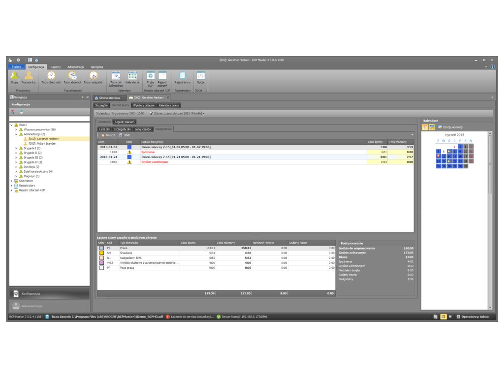 RCP Master 4 je program podporovaný operačným systémom Windows, slúžiaci na registráciu, analýzu a vyúčtovanie pracovného času. Registrácia začiatku a konca práce sa vykonáva elektronicky prostredníctvom prihlásenia zamestnanca na termináli RCP pomocou identifikátora (karty, prívesku alebo PIN kódu). Na základe histórie prihlásení získanej z registrátorov program vykonáva analýzu prítomnosti a výpočet celkového odpracovaného času spolu s rozpisom zložkových období, ako sú nadčasy, práca v nočných hodinách, služobné cesty, dovolenky atď. Program je ponúkaný vo verziách na podporu 25, 50, 100, 250, 500 alebo 1 000 zamestnancov, ako aj v jedno alebo viacpoužívateľskej verzii.