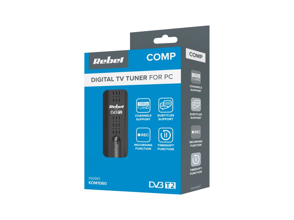 Plánujete dlhší pobyt na pozemku alebo v kempe? Vezmite si so sebou svoje obľúbené televízne programy a buďte vždy v obraze! Digitálny tuner Rebel je kompaktné zariadenie, ktoré poskytuje vynikajúcu kvalitu digitálneho pozemného televízneho príjmu v štandardoch DVB-T, DVB-T2 HEVC a DVB-C na notebookoch a počítačoch. Vďaka intuitívnemu softvéru je inštalácia tunera mimoriadne jednoduchá a rýchla.