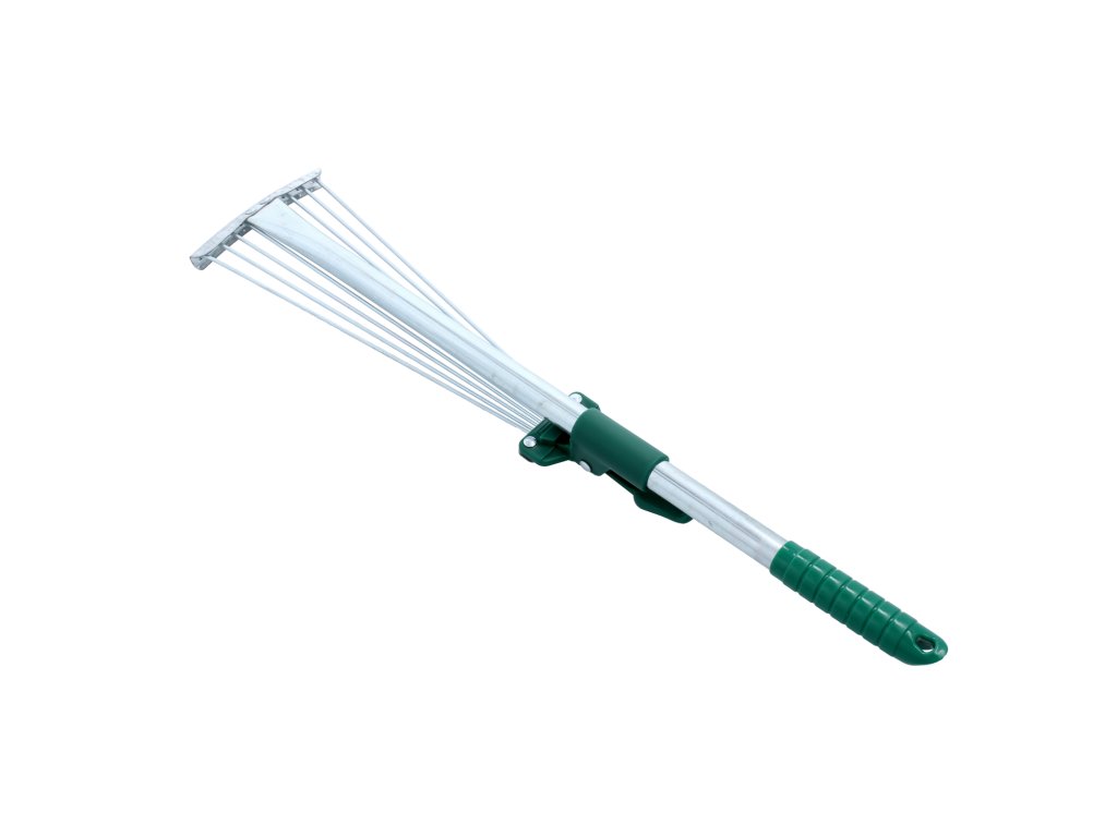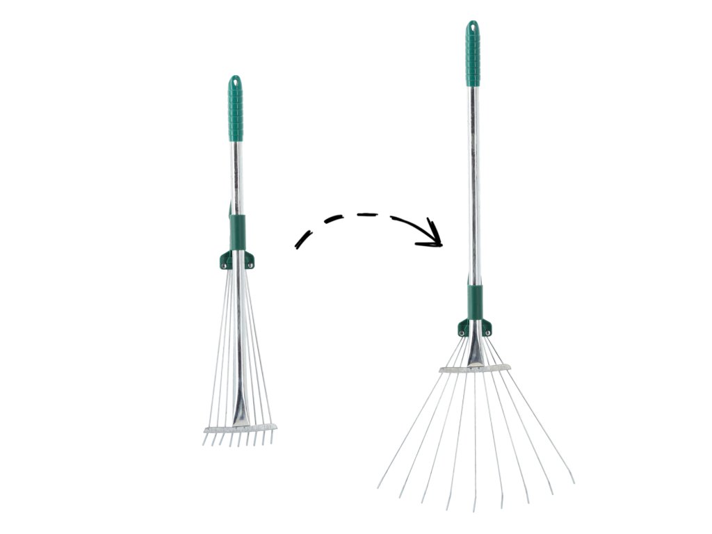 Metlo-hrable používané v záhradníctve na hrabanie lístia, pokosenej trávy, sena a iného záhradného odpadu. Vďaka nastaveniu dĺžky rukoväte a posuvníku ľahko prispôsobíte rozstup zubov charakteru práce v záhrade. Ergonomická konštrukcia zabezpečuje pohodlie počas používania.