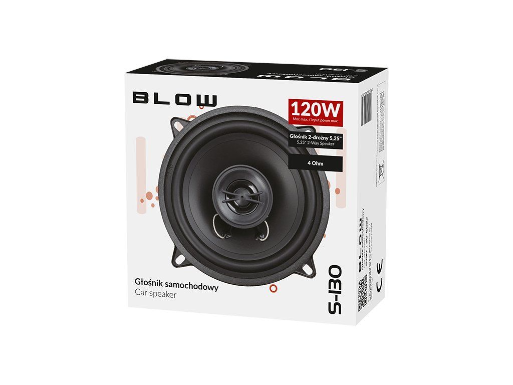 Reproduktor BLOW S-130 4Ohm je praktické riešenie pre každého, kto hľadá spoľahlivý 2-cestný reproduktor s dobrým zvukovým prejavom. Vďaka kompaktnému 5,25" prevedeniu je vhodný na rôzne audio zostavy a inštalácie, kde je dôležitá vyvážená kombinácia výkonu, citlivosti a odolnosti.