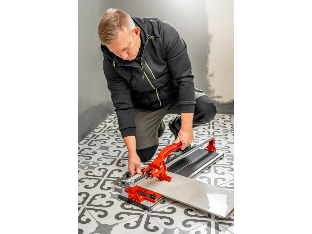 Je určený nas p r a co v an i e obkladov a terakoty. Stroj umožňuje vykonávať základné operácie rezania dlaždíc. Kombinovaný rezací nôž s ložiskom a účinný doraz sú uložené na jednom oceľovom vedení v tvare X. Stabilná základňa stroja je vyrobená z hliníka.
