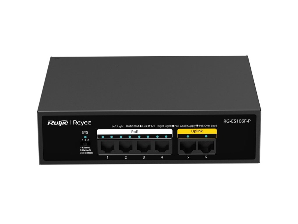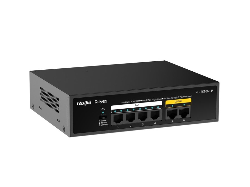 Nespravovaný PoE switch 4+2 RG-ES106F-P - Reyee by Ruijie