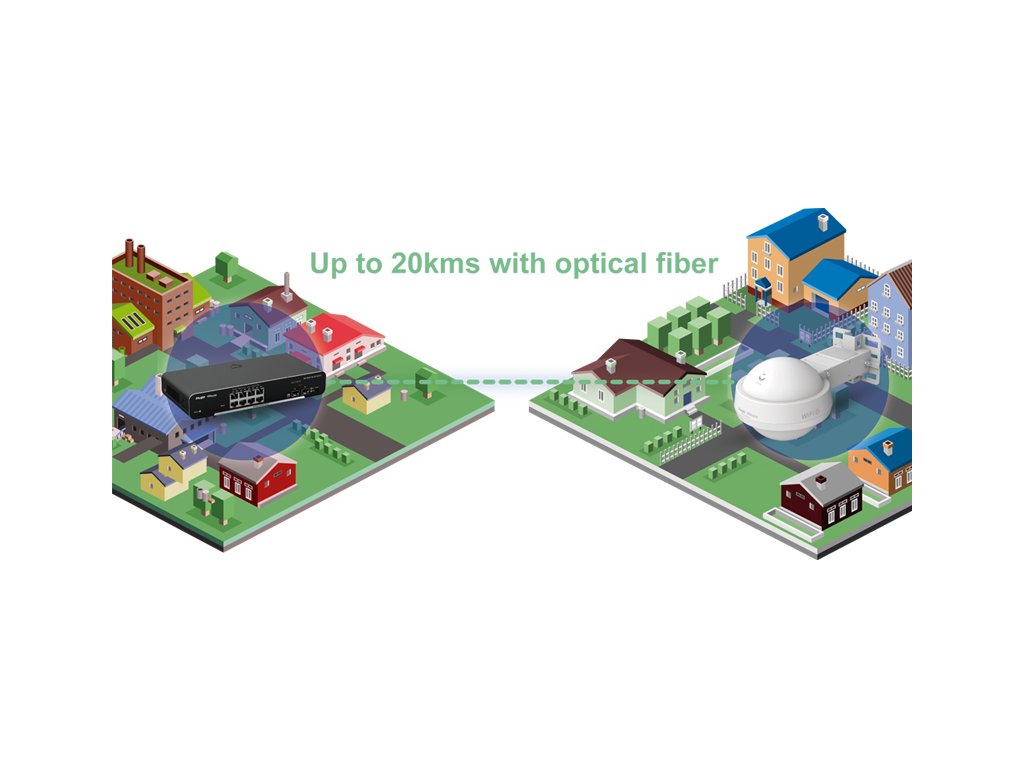 - Porty: 1 × 10/100/1000 Base-T, 1 × SFP 1G Base-X(prenos optickým káblom do 20km)