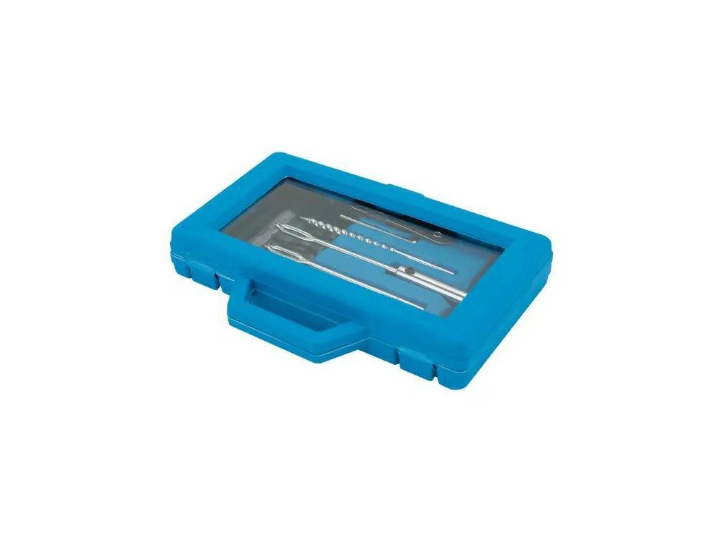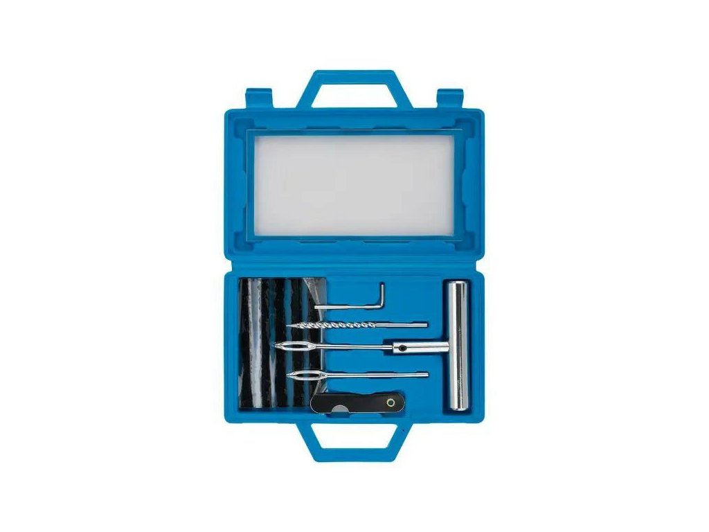 Kompletná súprava 12 prvkov – obsahuje všetky potrebné doplnky na efektívnu a rýchlu opravu bezdušových pneumatík.