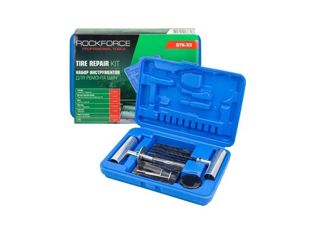 Profesionálna sada na opravu pneumatík ROCKFORCE je komplexné riešenie pre rýchlu a efektívnu opravu prerazených bezdušových pneumatík – ako v osobných automobiloch, SUV, tak aj v ľahkých dodávkových vozidlách. Vďaka bohatému vybaveniu umožňuje vykonanie mnohých opráv bez nutnosti demontáže kolesa alebo návštevy servisu.