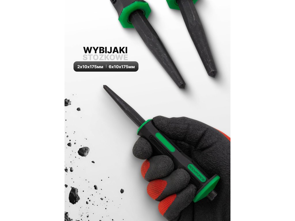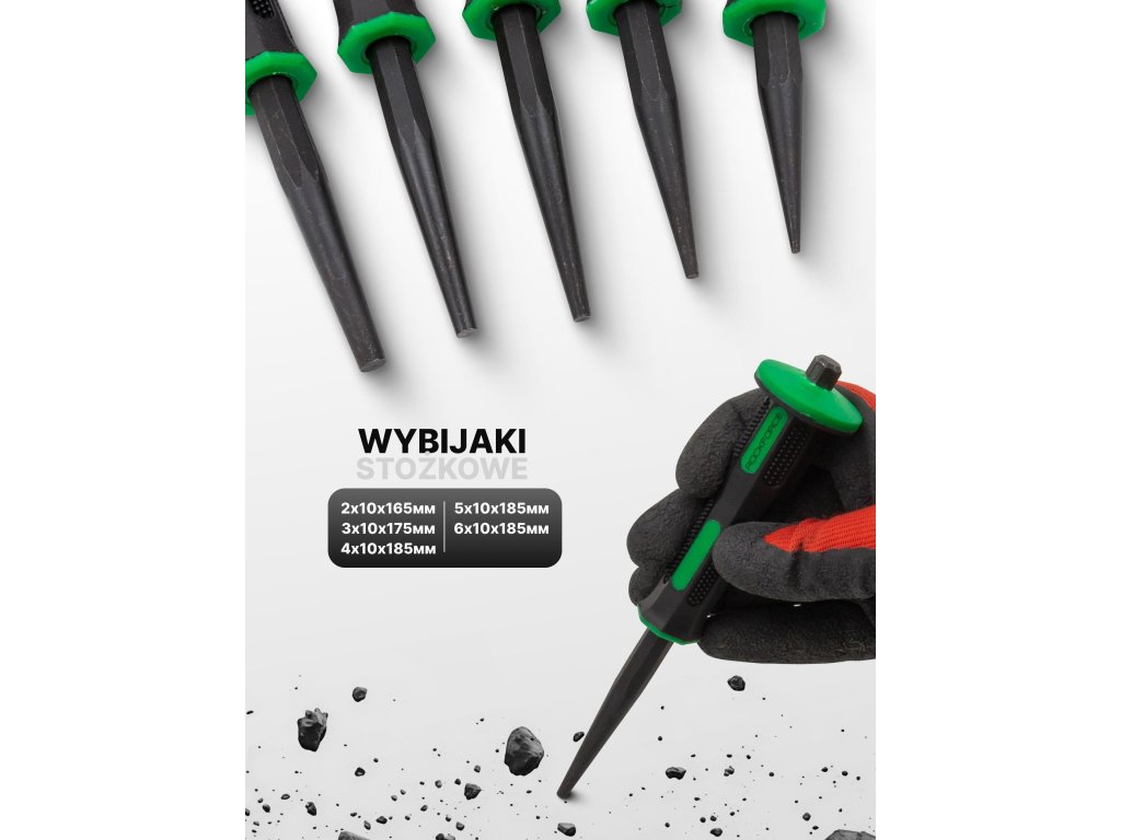 - Kónické vyrážače – 5 ks: 2×10×165 mm, 3×10×175 mm, 4×10×185 mm, 5×10×185 mm, 6×10×185 mm