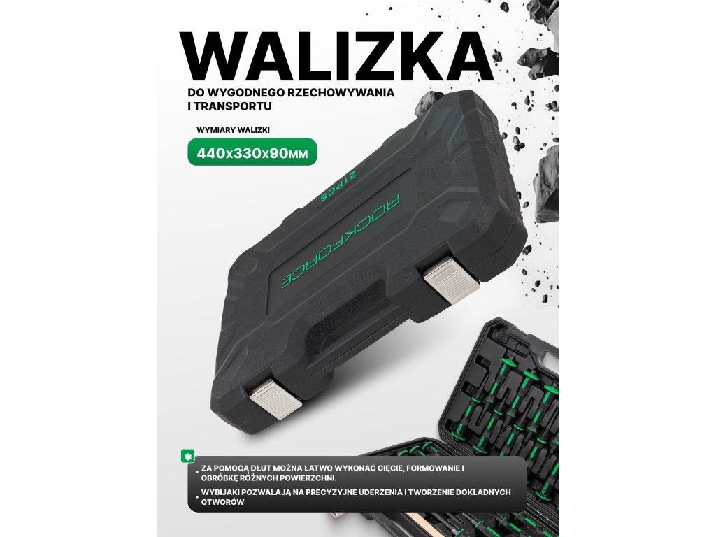 ROCKFORCE presná sada DLÁT a vyrážačiek 21 PRVKOV z OCELE v KUFRI