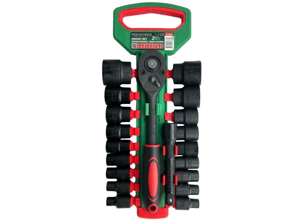 ROCKFORCE Sada PÄTÍC 1/2" 20 KUSOV s RAČŇOU a NÁSTAVCEM 8-32mm