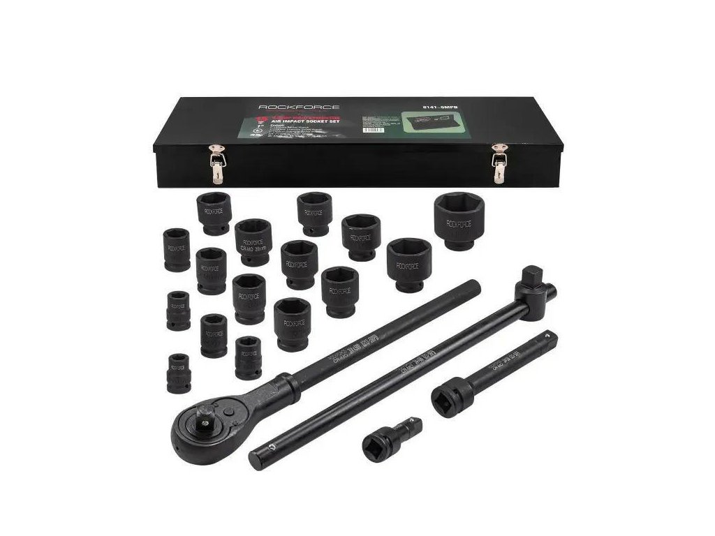 Sada nárazových nástrojov ROCKFORCE PROFI 3/4" (21 dielov) je sada vysokoodolných nástrojov určená na prácu so spojeniami s veľkým krútiacim momentom. Vďaka použitiu chrómo-molybdénovej ocele (Cr-Mo) sa tieto nástroje vyznačujú výnimočnou odolnosťou voči preťaženiam a úderom, čo ich robí nenahraditeľnými v automobilových dielňach, servisoch nákladných áut, priemyselných podnikoch a v ťažkom stavebníctve.