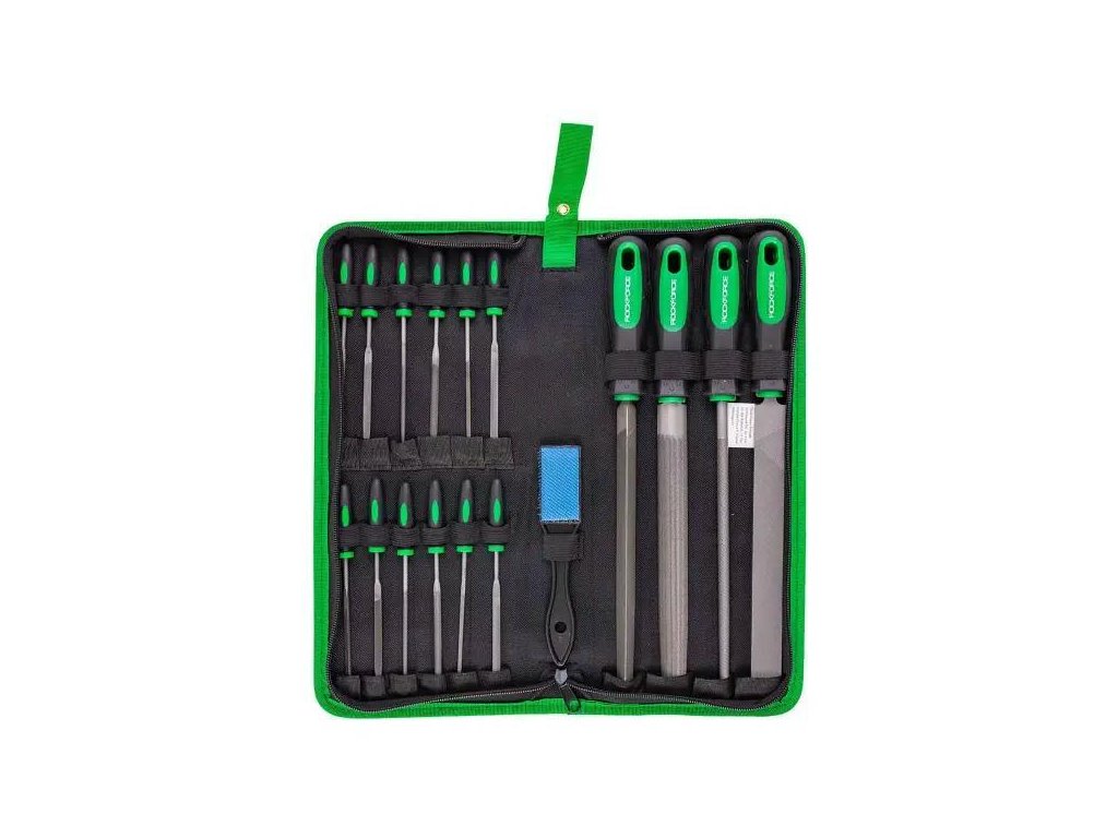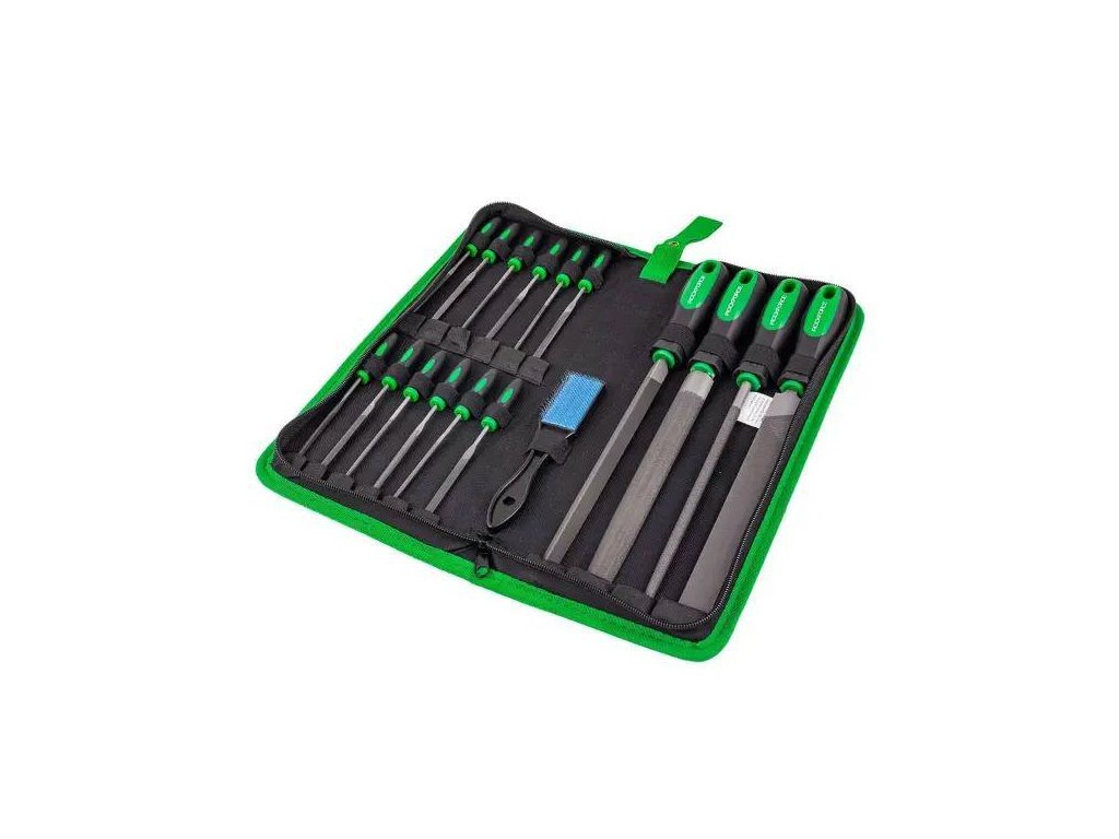 Súprava pilníkov a viacprofilových pilníkov 17 el. je nezameniteľný nástroj pre každého, kto si váži presnosť, kvalitné spracovanie a všestrannosť. Nezáleží na tom, či tvoríte modely, zaoberáte sa spracovaním kovov, vykonávate klenotnícke práce alebo potrebujete presný pilník na rekonštrukčné práce — táto súprava bude spoľahlivo fungovať.